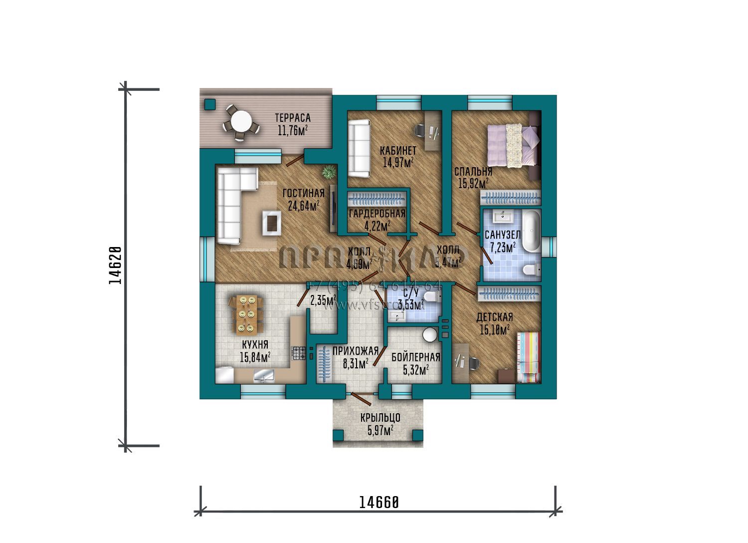 Проект квадратного одноэтажного дома с вальмовой кровлей S2-145 (363-145-1)