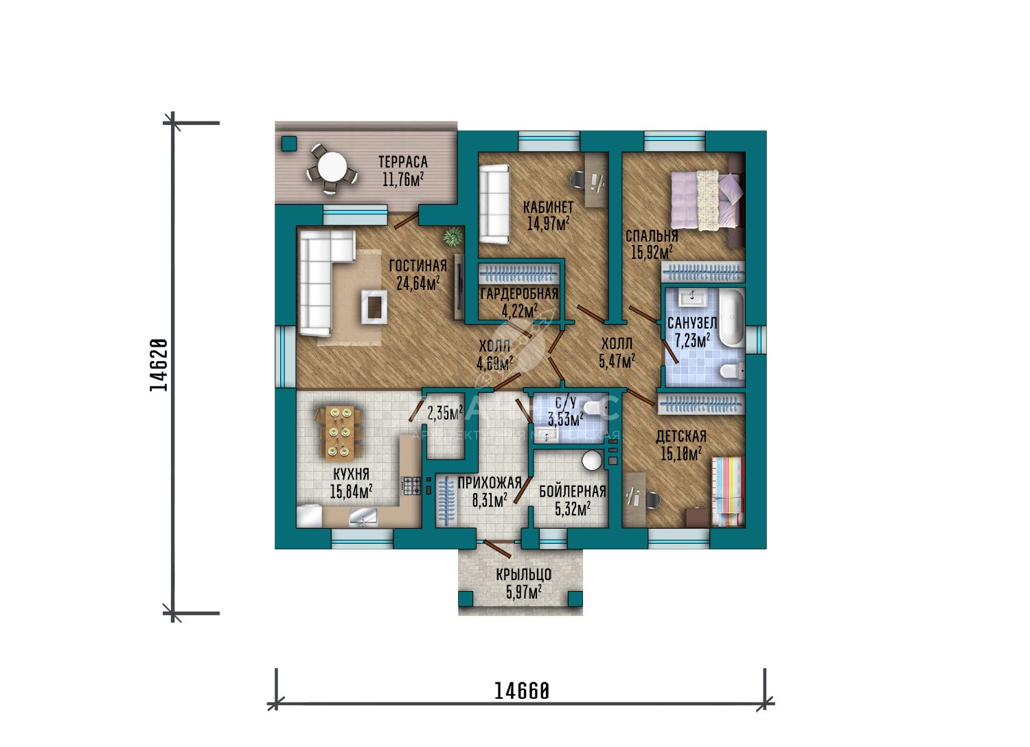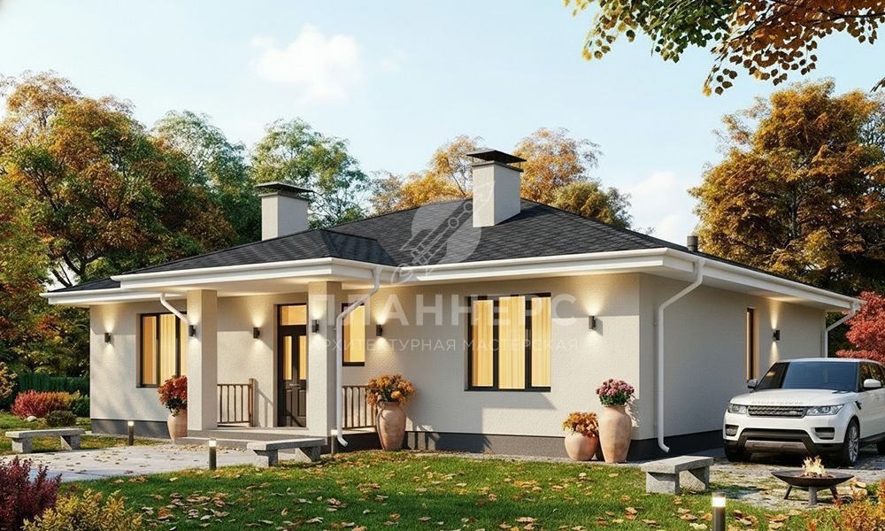 Проект с оштукатуренным фасадом и террасой S2-145 (549-145-1)