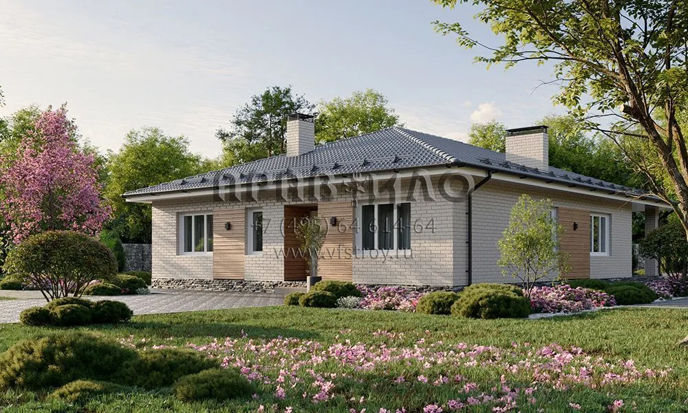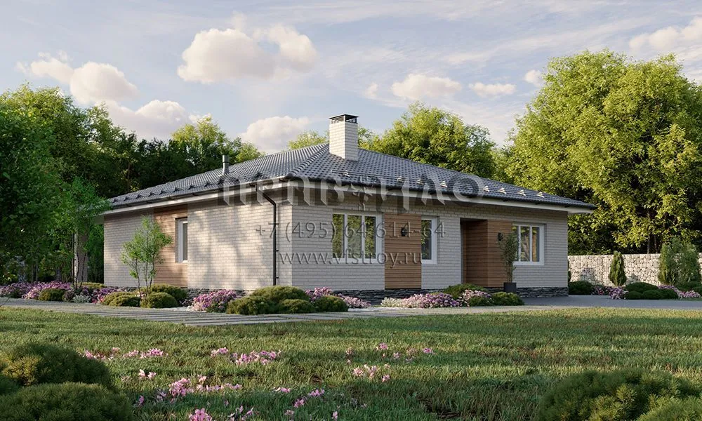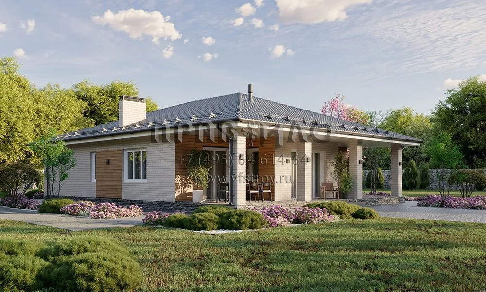 Проект одноэтажного дома с большой крытой террасой во всю ширину дома S2-147 (287-147-1)
