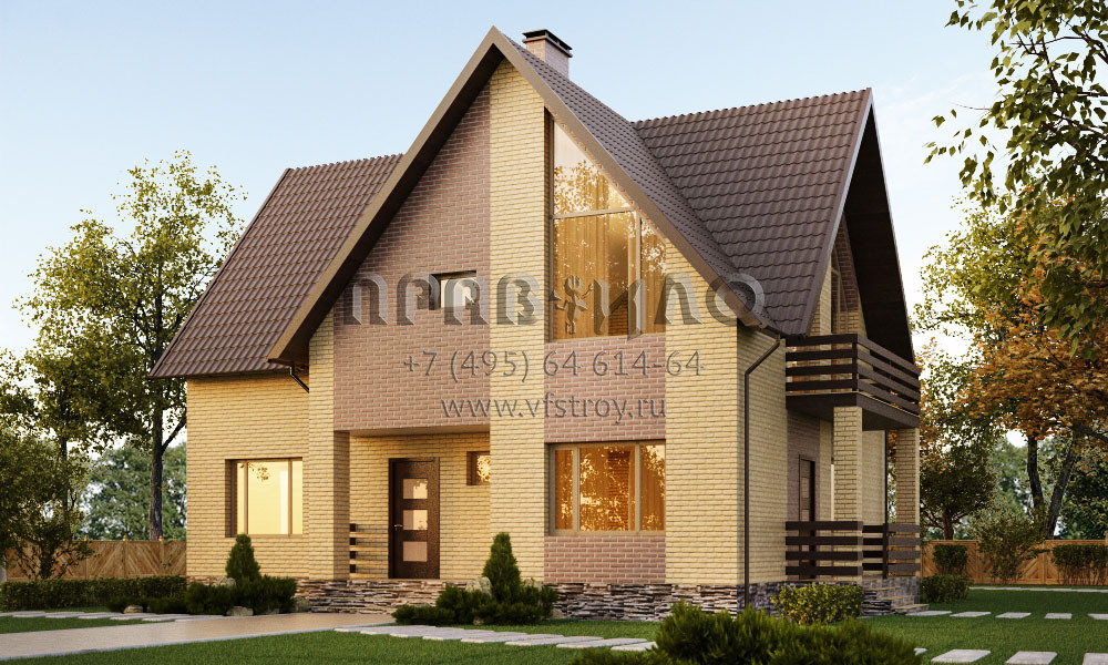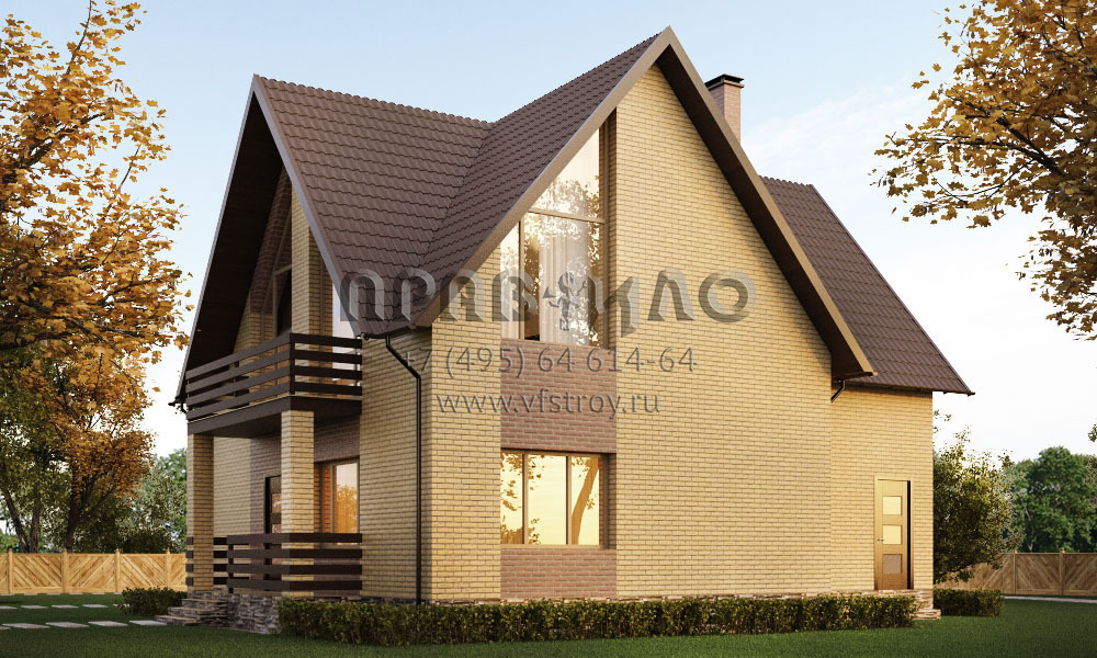 Проект компактного загородного дома с мансардным этажом и балконом S2-151 (112-151-1М)