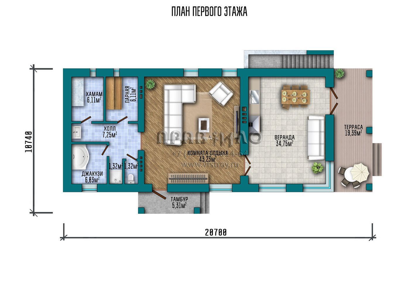 Проект SPA комплекса с парной, хамамом, джакузи, комнатой отдыха, верандой и подвальным помещением S2-153 (211-153-1П)