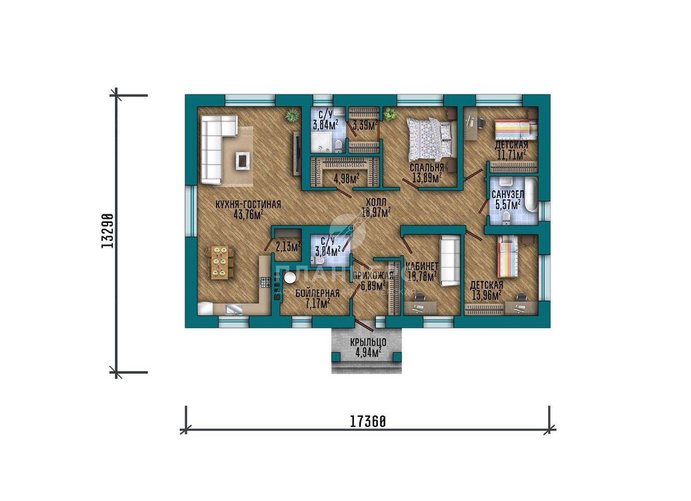 Проект яркого одноэтажного дома с вальмовой кровлей S2-154 (393-154-1)