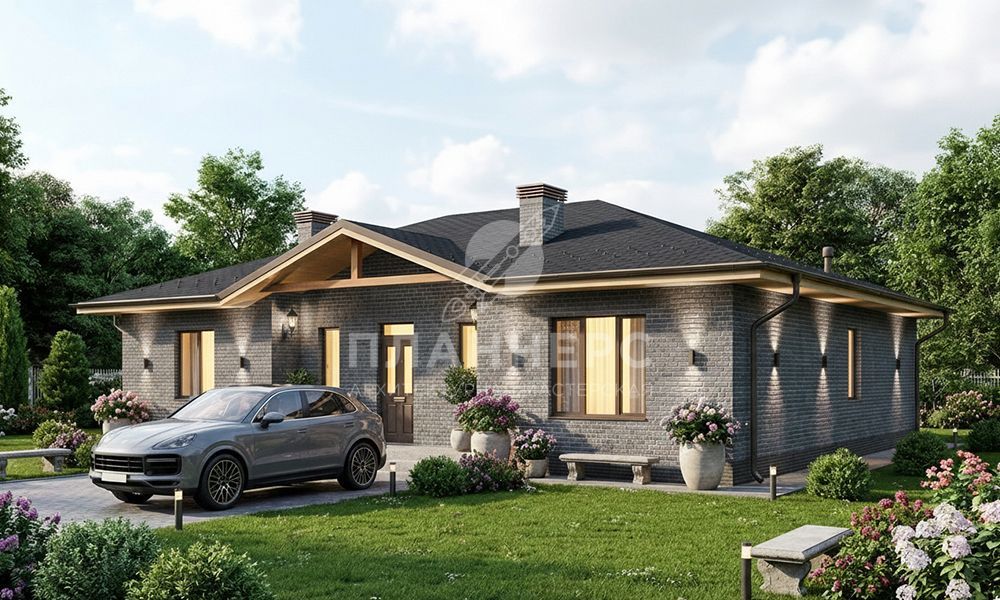 Проект с фасадом из серого кирпича и террасой S2-155 (550-156-1)