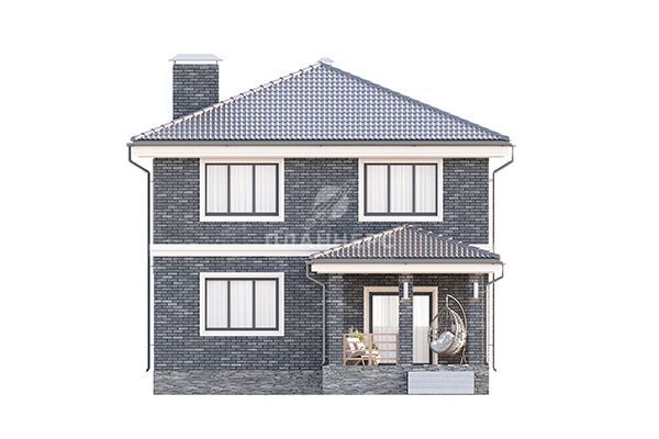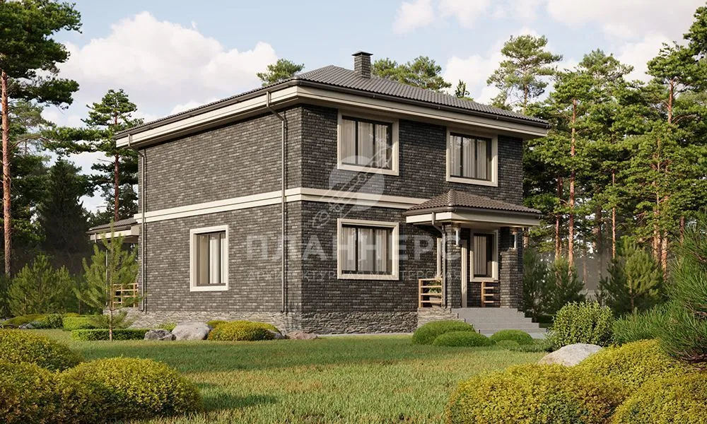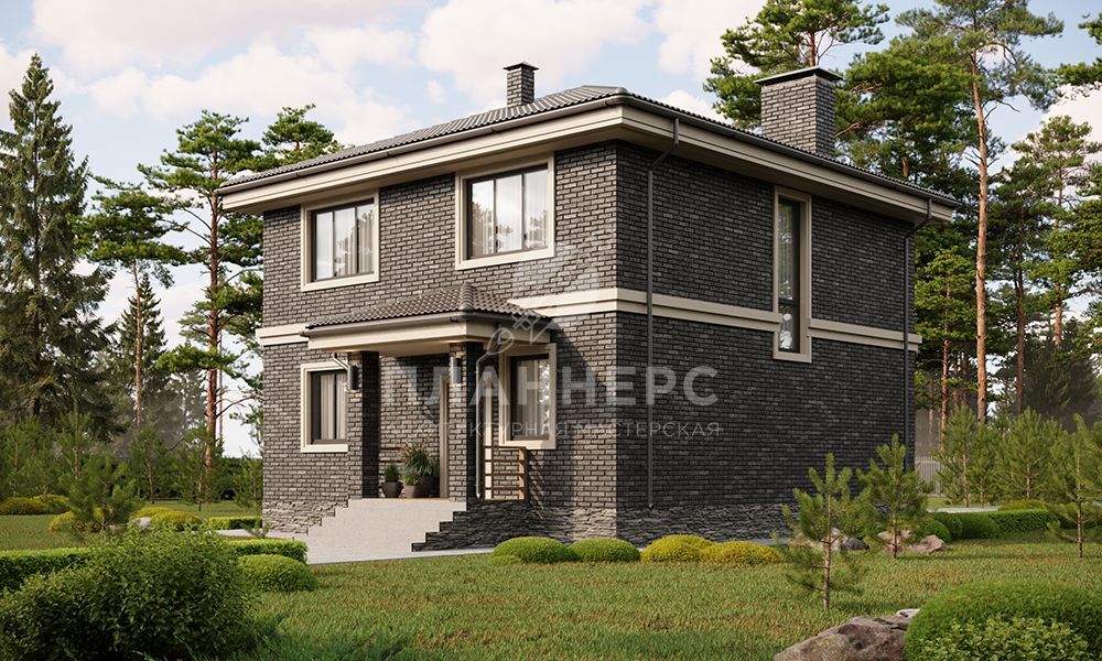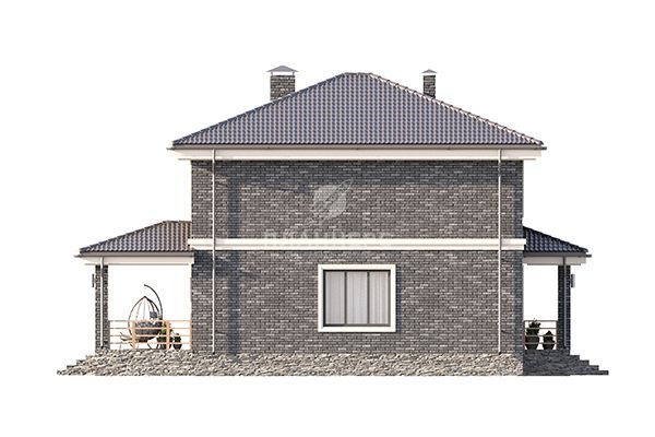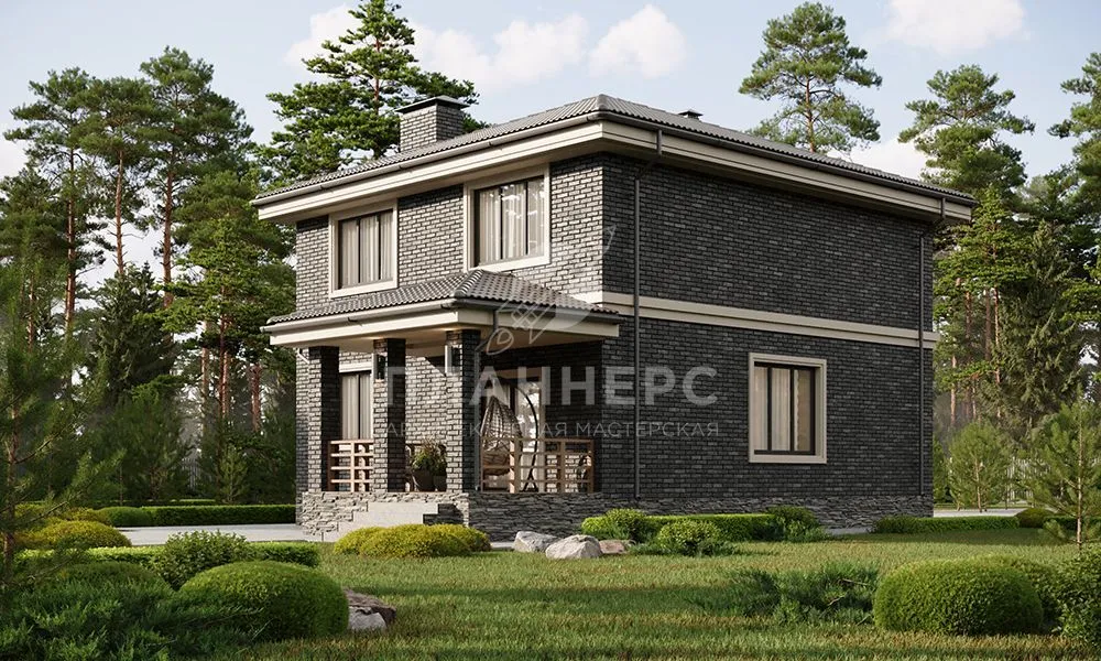 Проект квадратного двухэтажного дома с отделкой фасадов темным облицовочным кирпичом S2-156 (402-156-2)