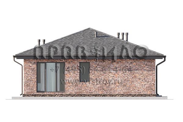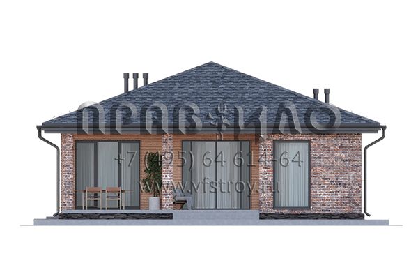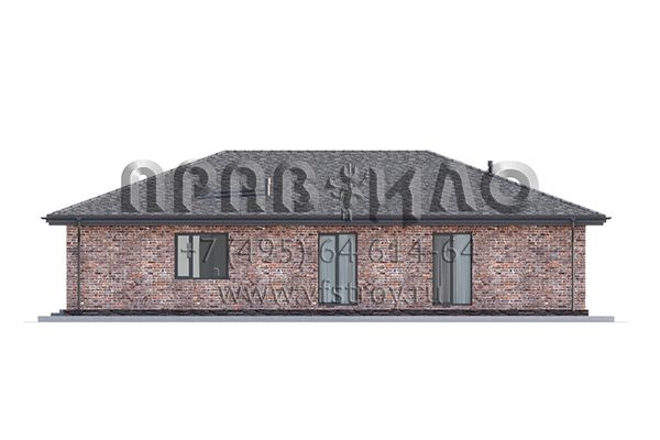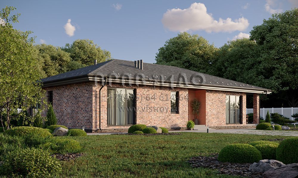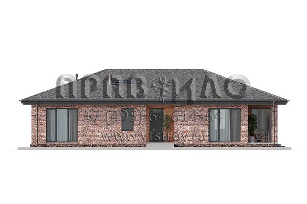Проект одноэтажного дома с комбинированной отделкой фасада облицовочным кирпичом и планкеном S2-157 (359-157-1)