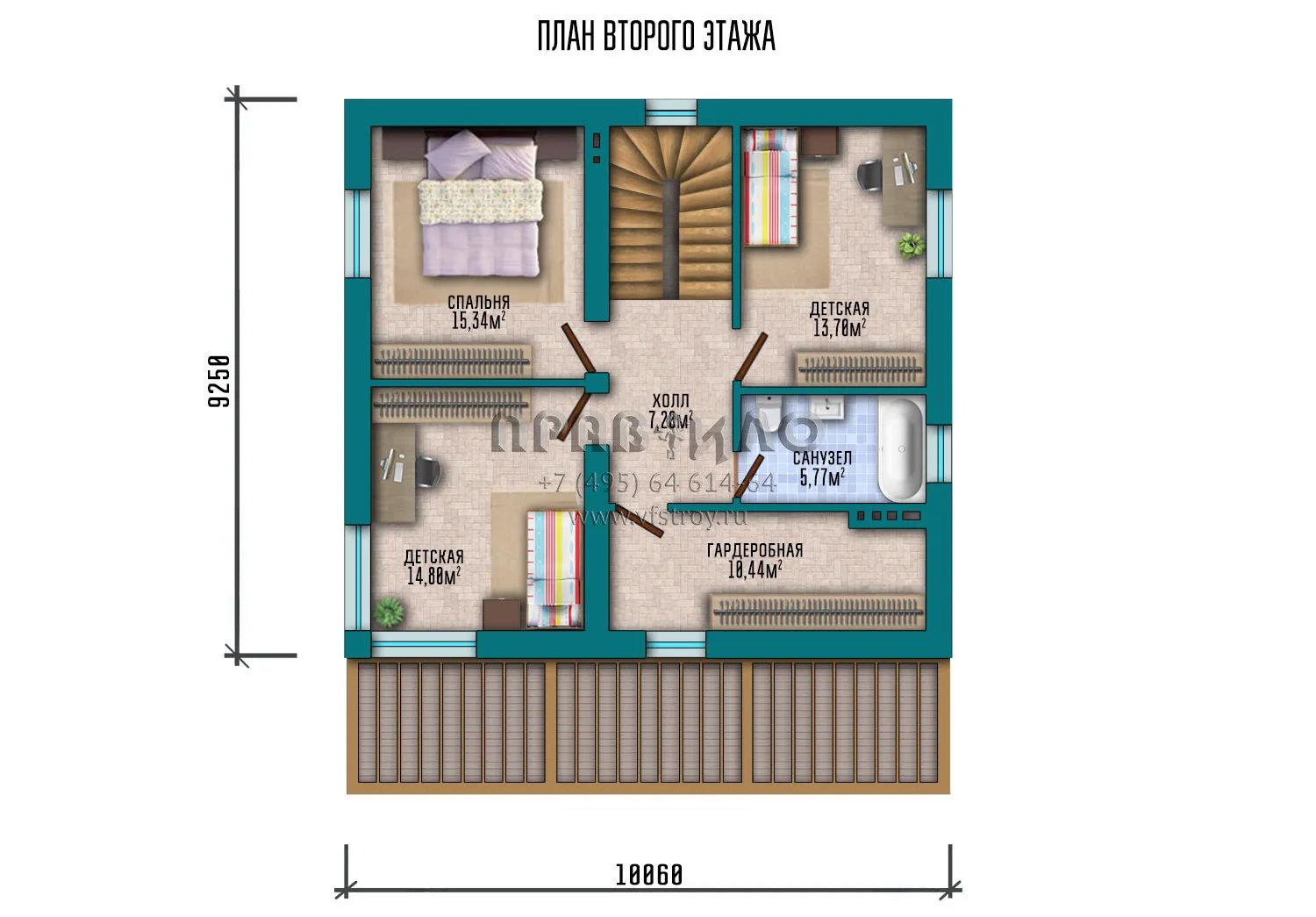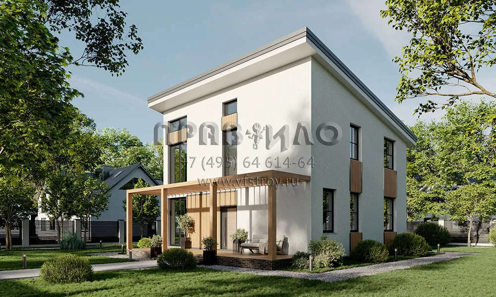 Проект двухэтажного дома в современном стиле с большой террасой и тремя спальными комнатами S2-158 (144-158-2)