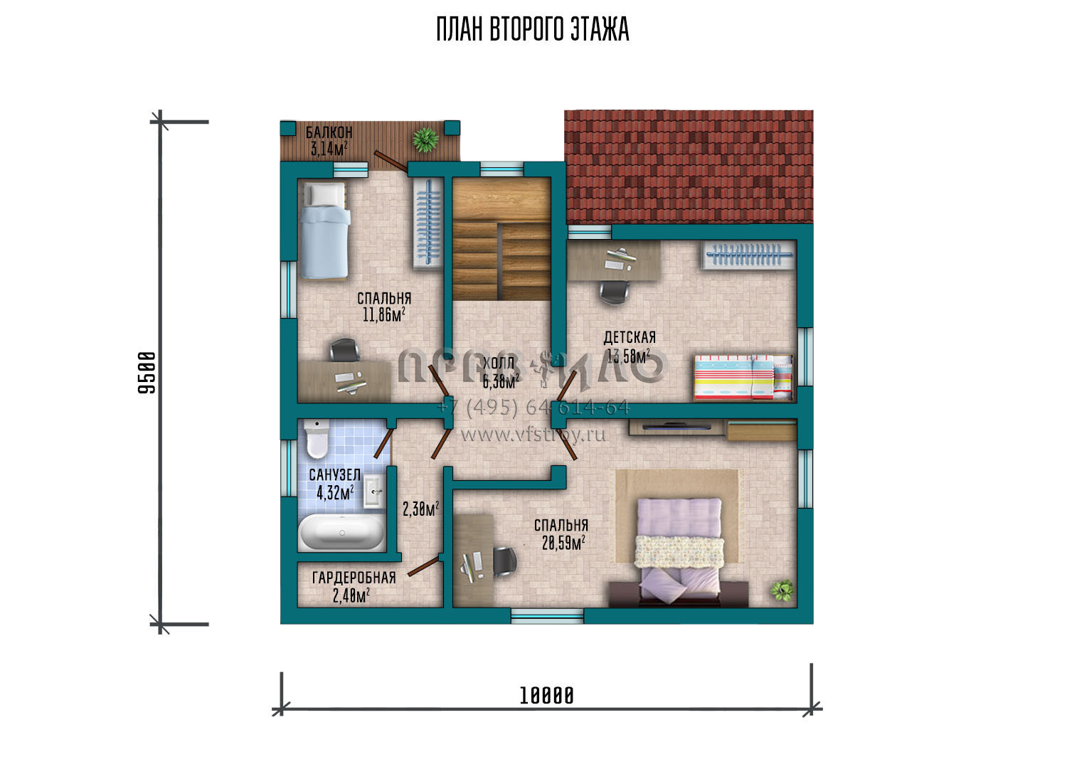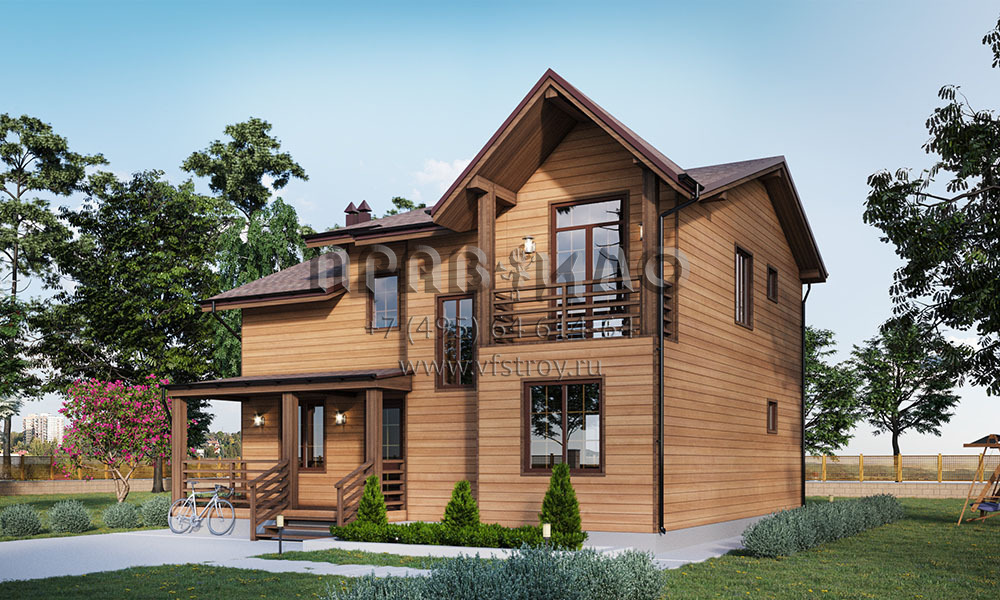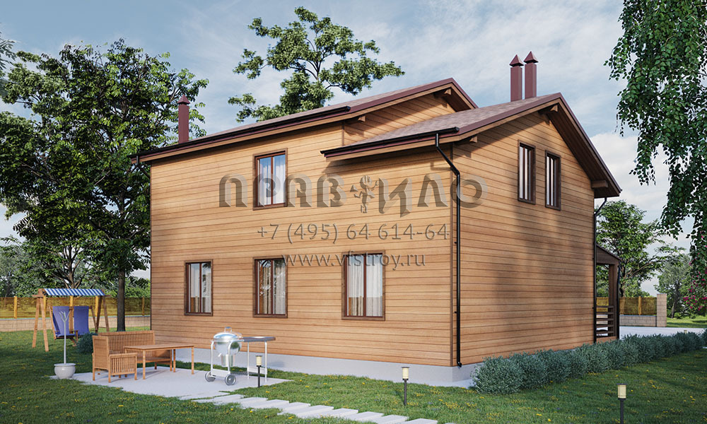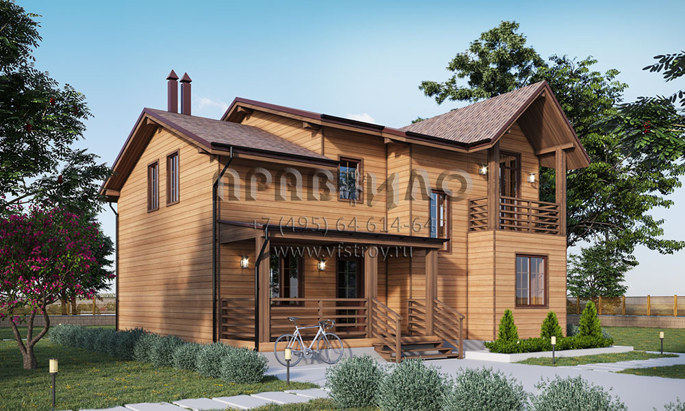 Проект дома с мансардой и отделкой сайдингом под дерево S2-161 (080-131-1М)