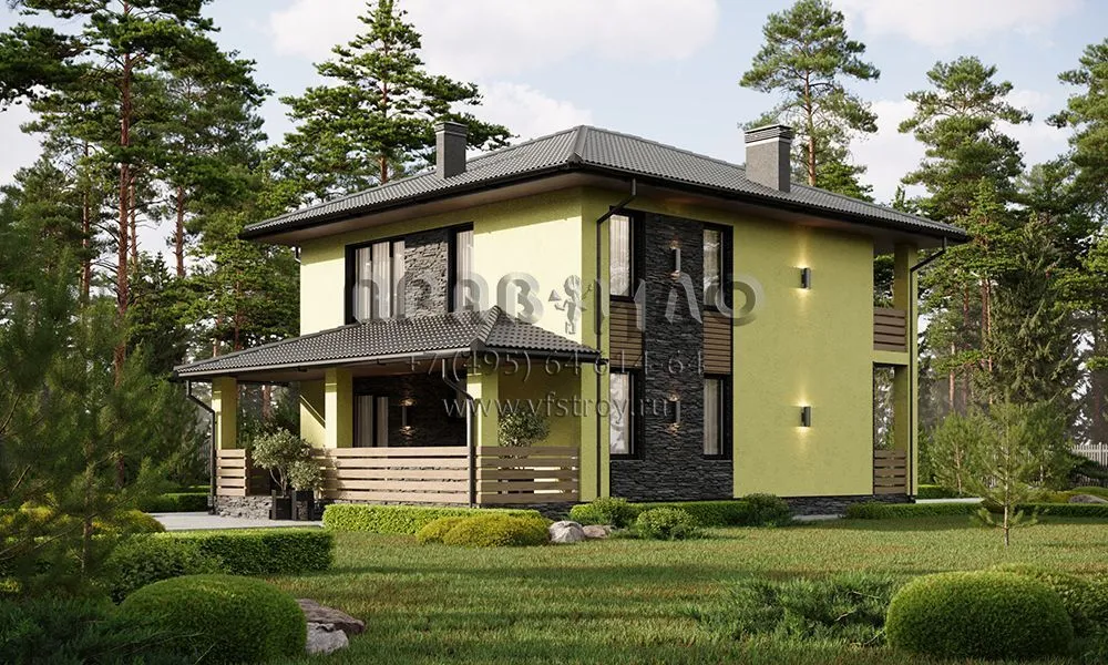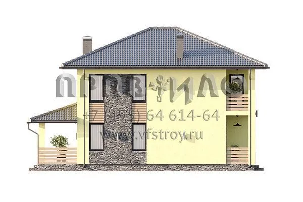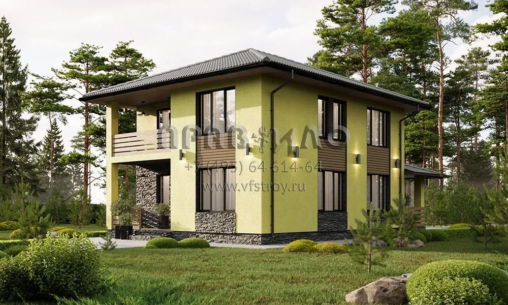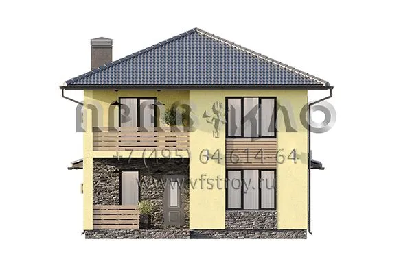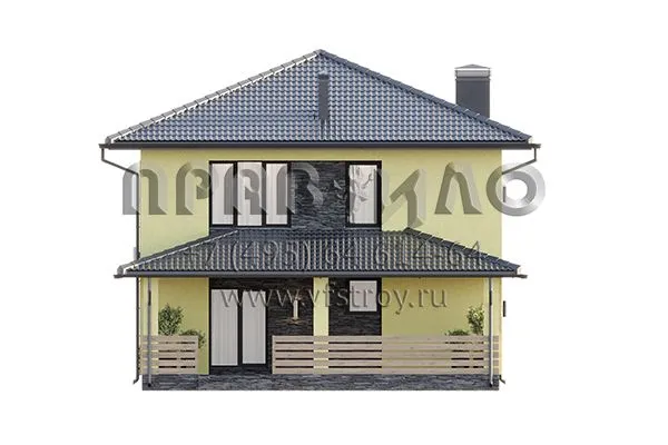 Проект двухэтажного дома с большой совмещенной зоной кухни и гостиной с выходом на крытую террасу S2-161 (352-161-2)