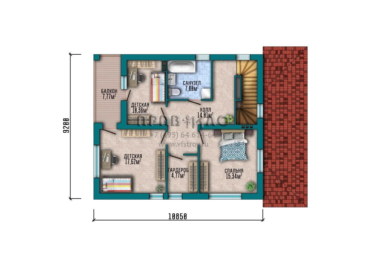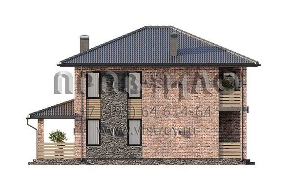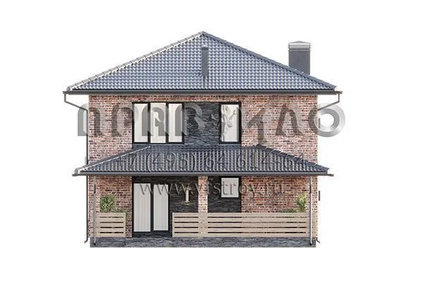 Проект двухэтажного дома с комбинированной отделкой фасада облицовочным кирпичом, планкеном и декоративным камнем S2-161 (377-161-2)