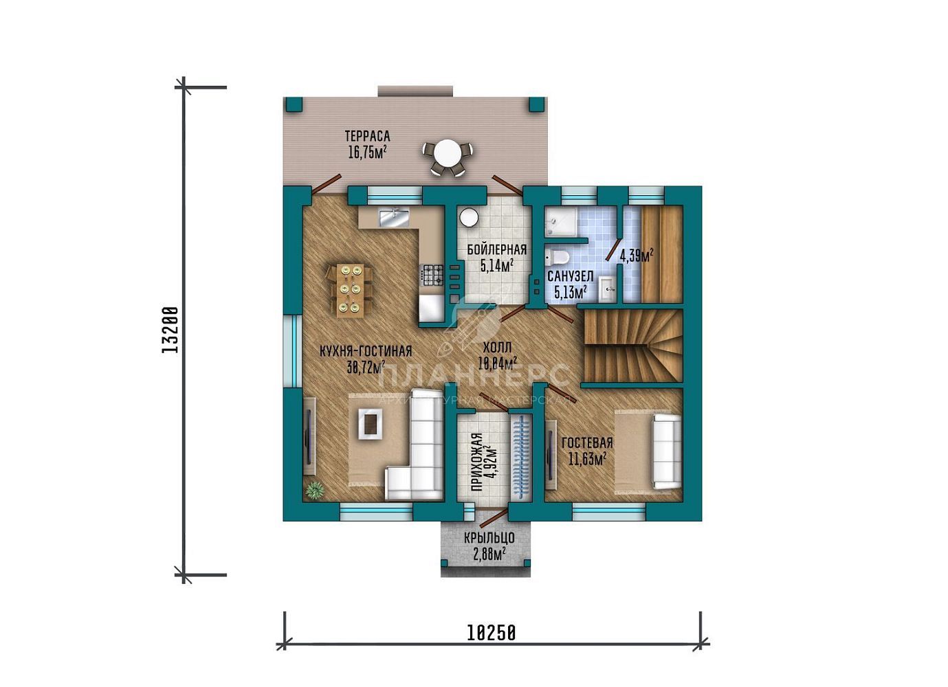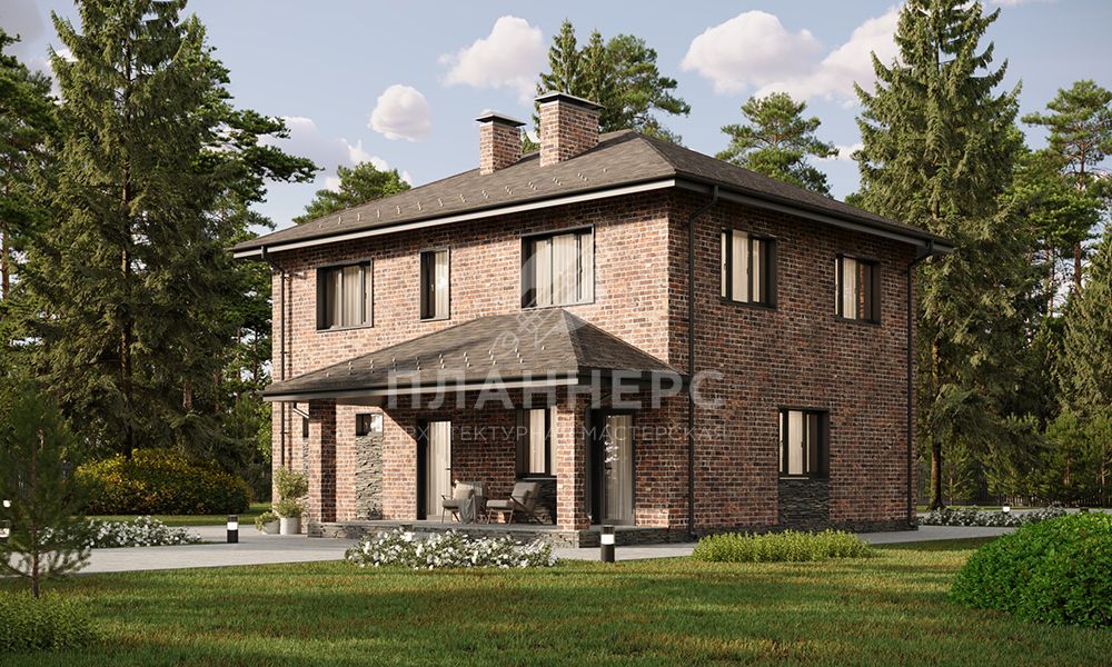 Проект двухэтажного дома с большой крытой террасой S2-161 (430-162-2)