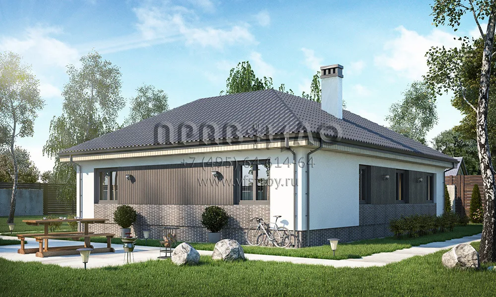 Яркий одноэтажный дом с комбинированной отделкой S2-162 (008-162-1)