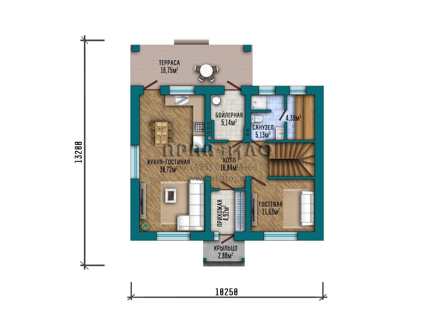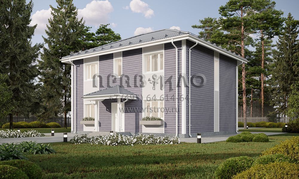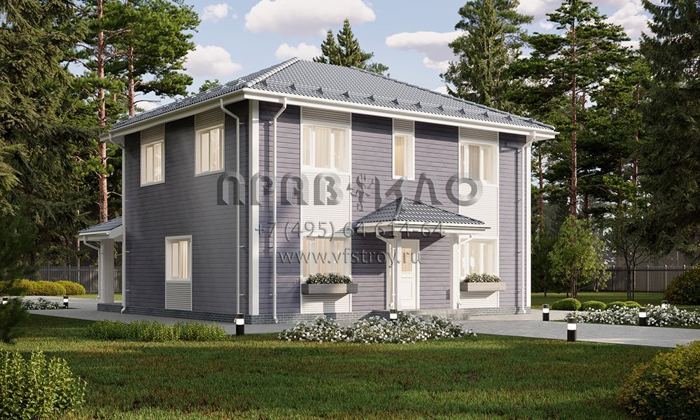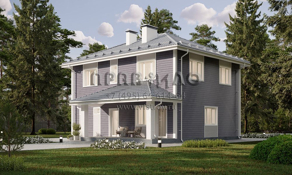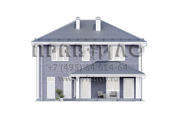 Проект двухэтажного дома с большой террасой, пятью комнатами и просторной кухней-гостиной S2-162 (384-162-2)