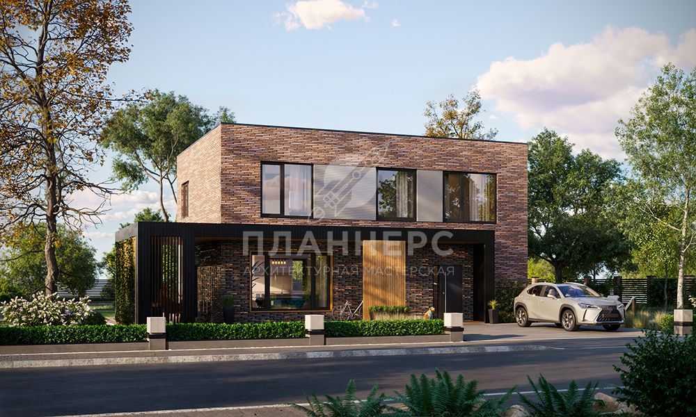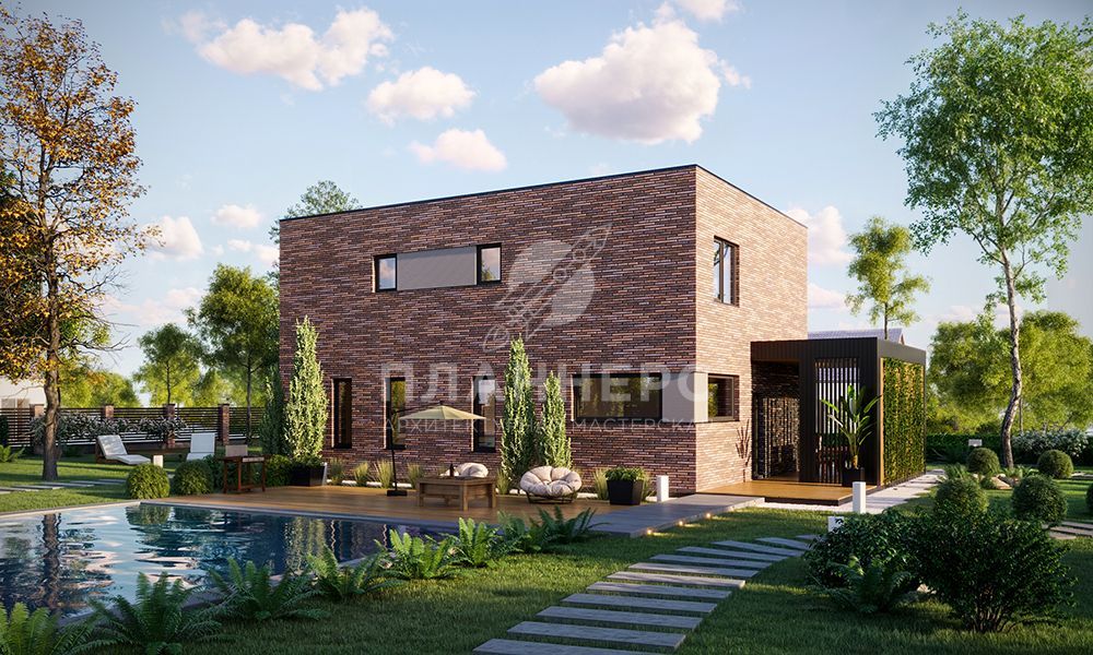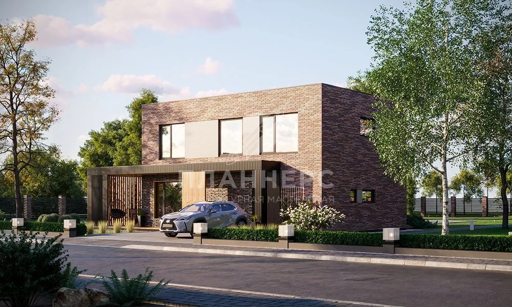 Проект двухэтажного дома в стиле хай-тек с большой угловой террасой S2-163 (409-163-2)