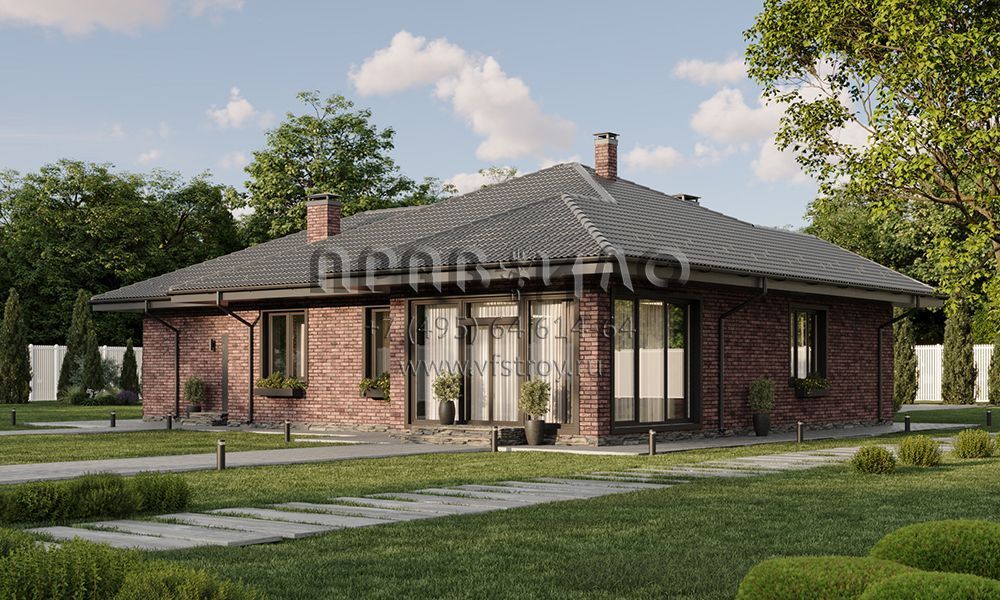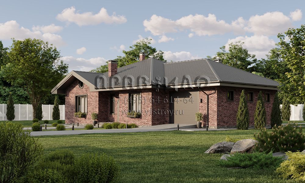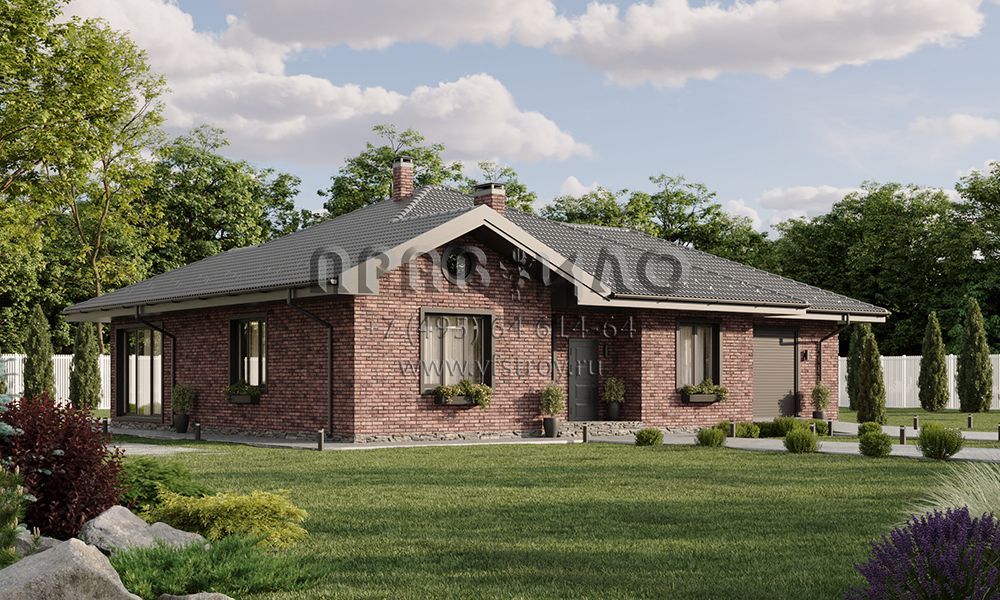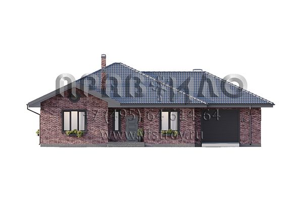 Проект одноэтажного дома с совмещенной кухней-гостиной, пристроенным гаражом и крытой верандой S2-164 (381-164-1Г)