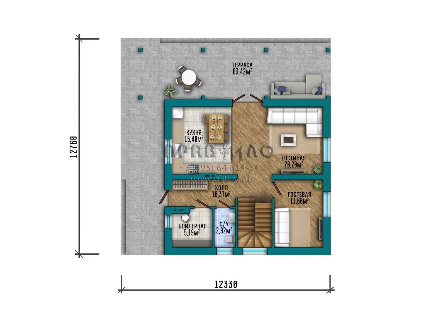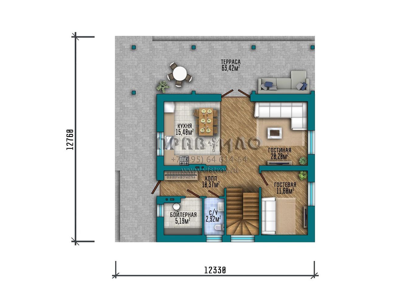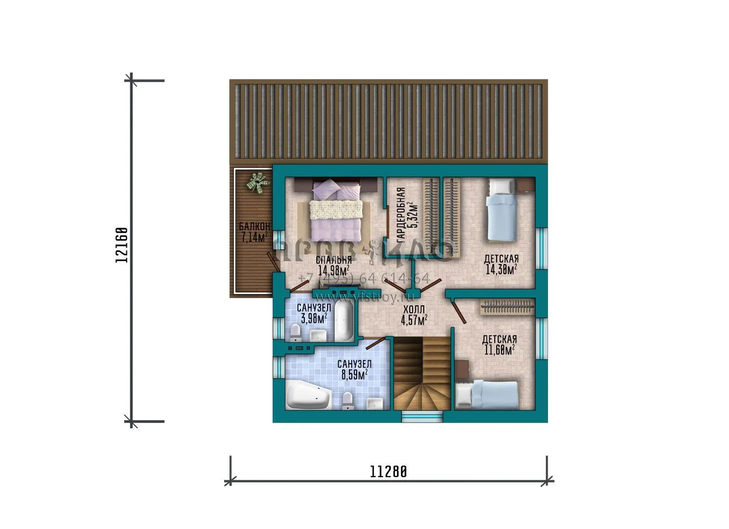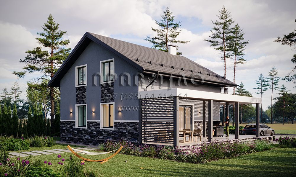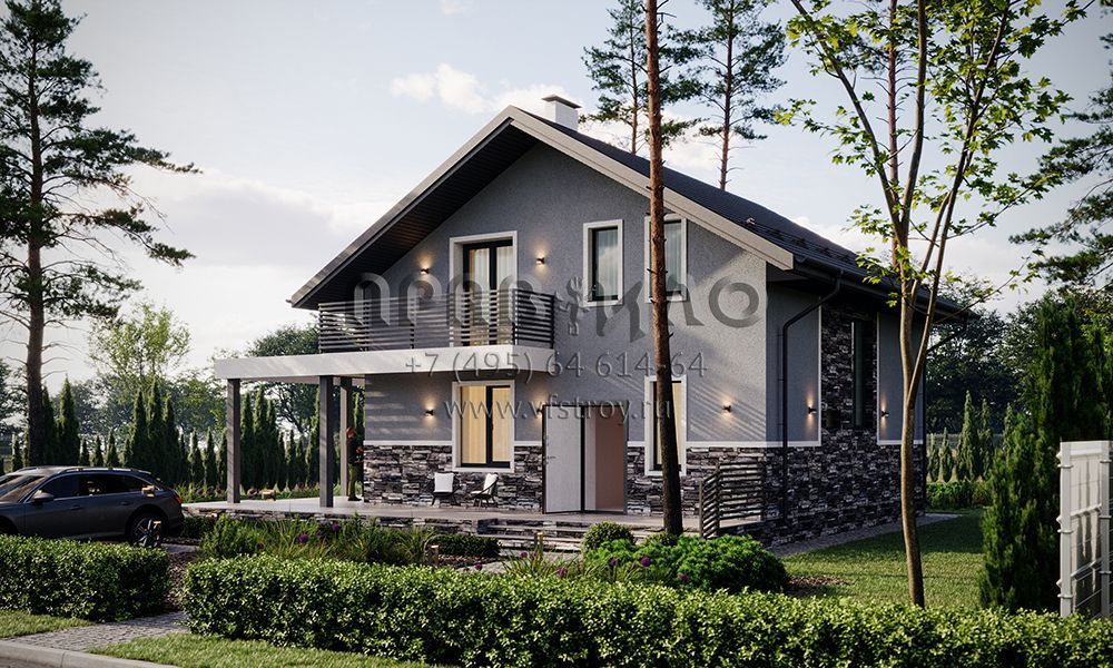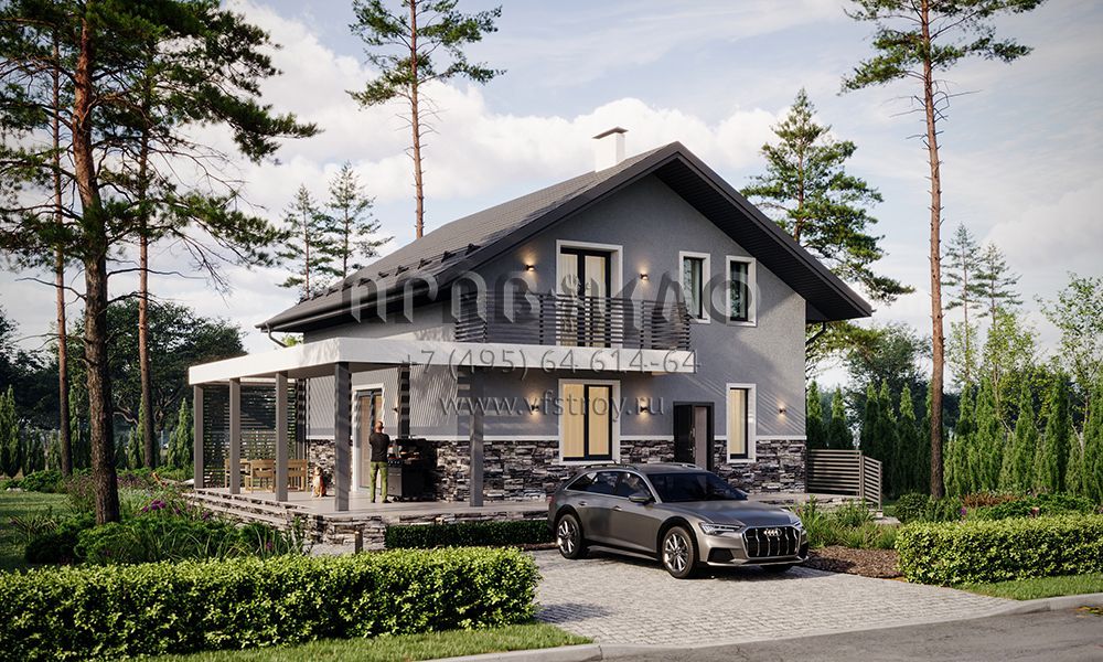Проект загородного дома с мансардой, большой террасой и балконом с главного фасада S2-165 (309-165-1М)
