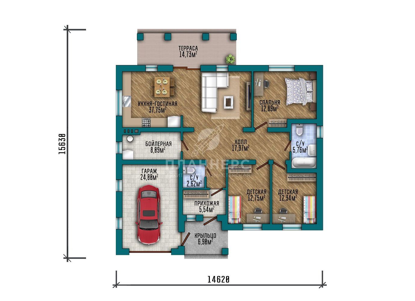Проект просторного одноэтажного дома с гаражом для 1 автомобиля S2-165 (408-165-1Г)