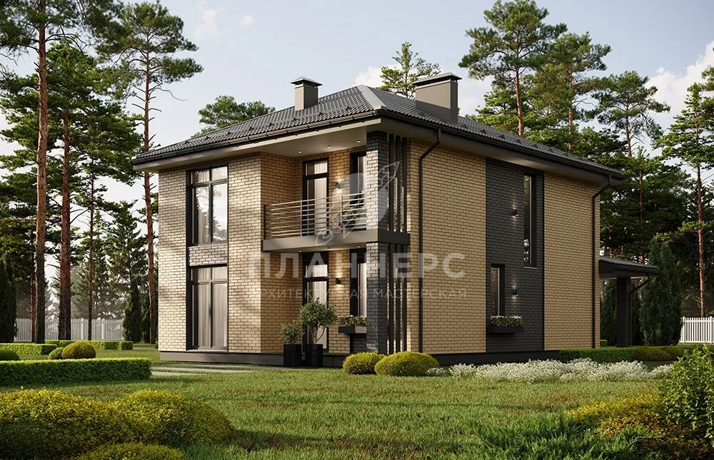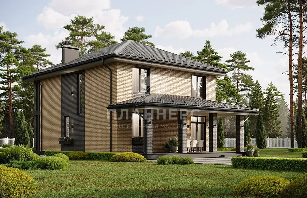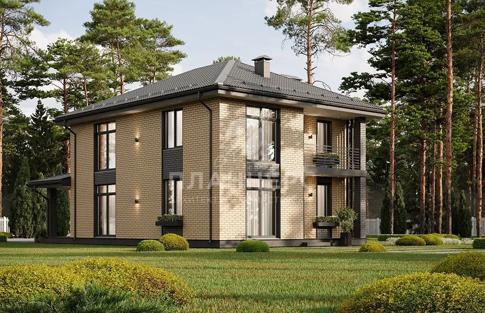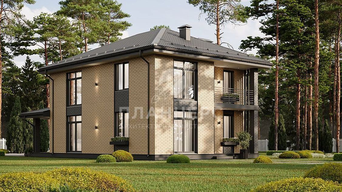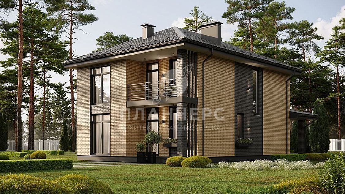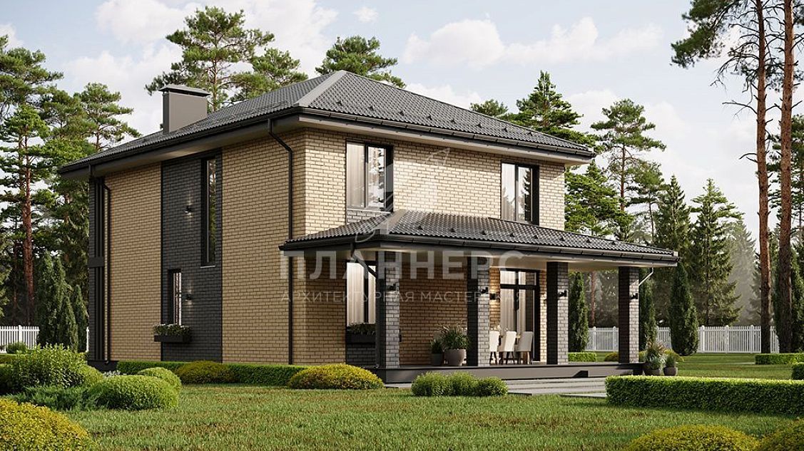 Проект двухэтажного дома с комбинированной отделкой фасада облицовочным кирпичом S2-166 (423-167-2)