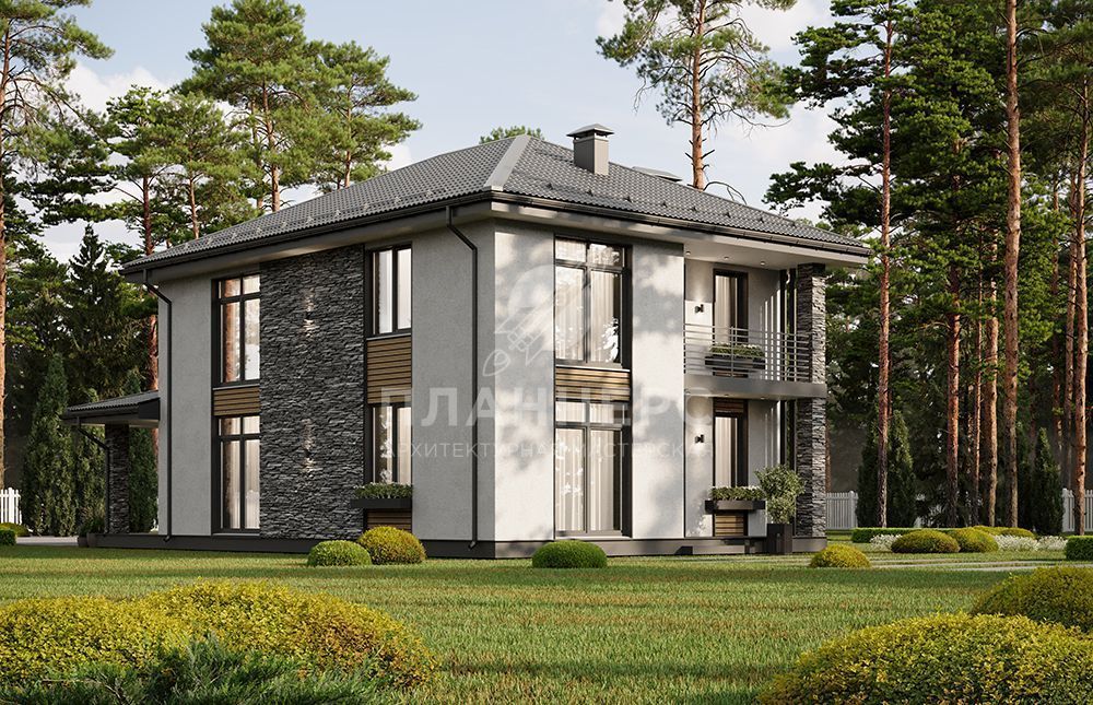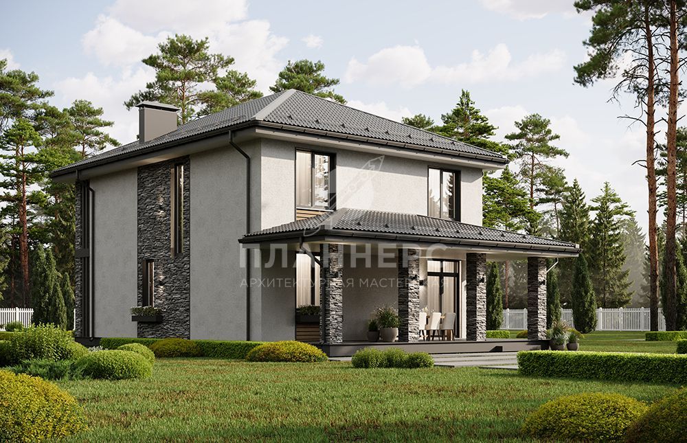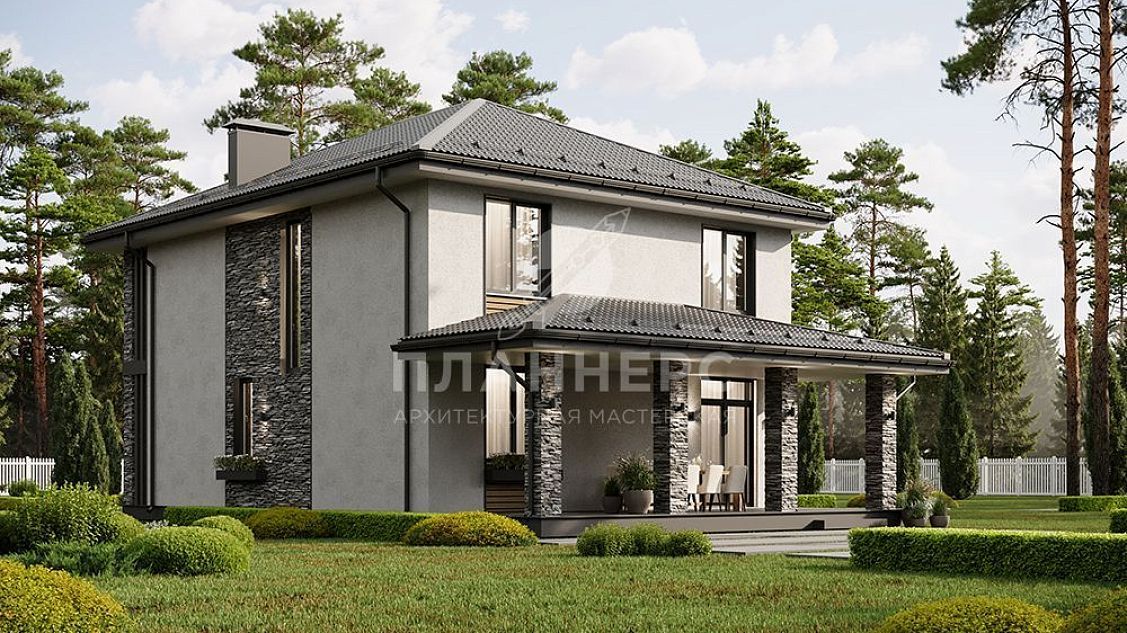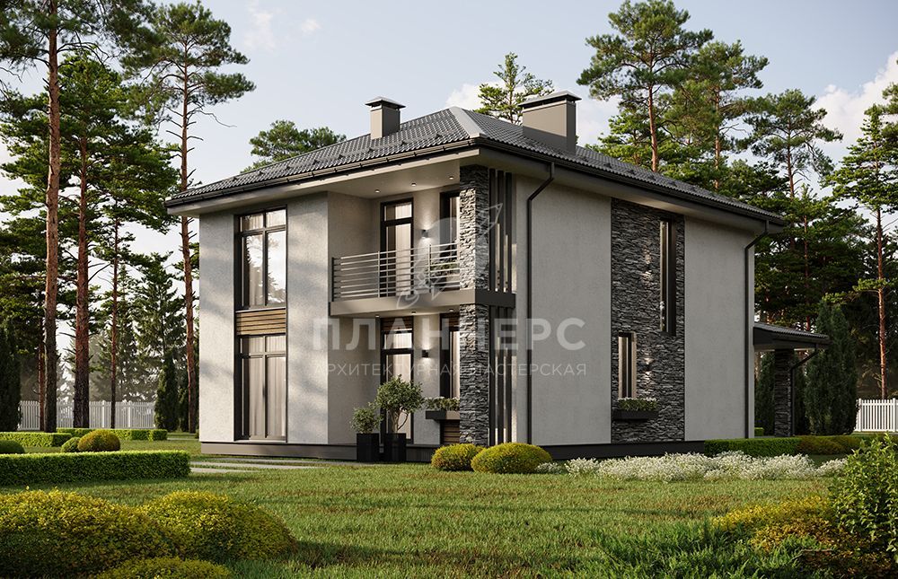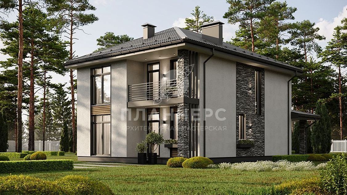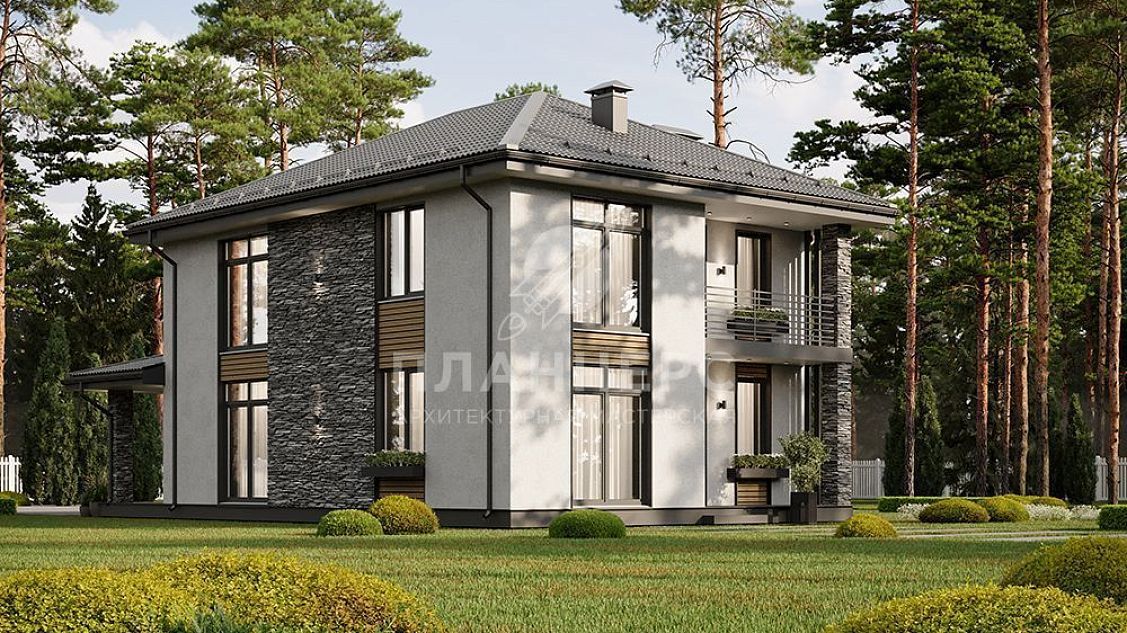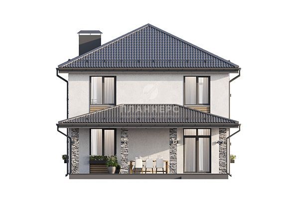 Проект двухэтажного дома с большой террасой и балконом на втором этаже S2-166 (438-167-2)