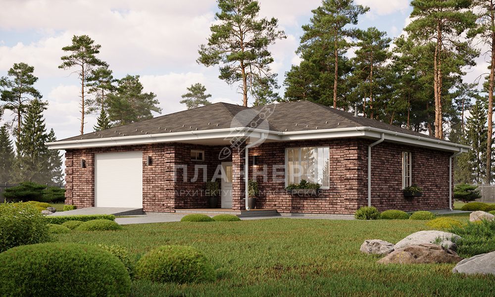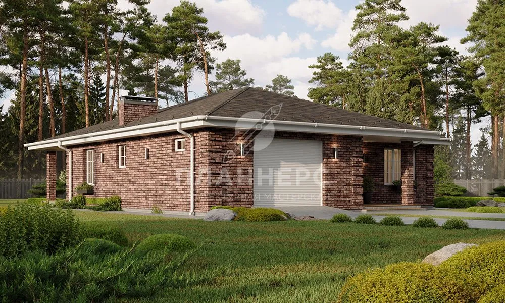 Проект одноэтажного дома с террасой, гаражом и комбинированной крышей S2-167 (425-167-1Г)