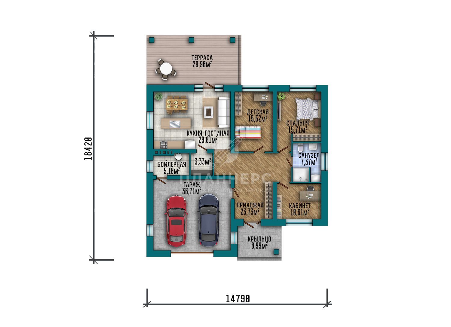 | Гараж | 2 машины |