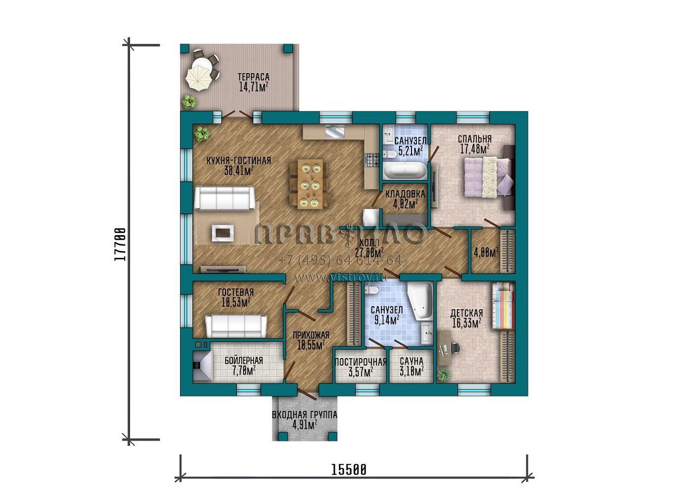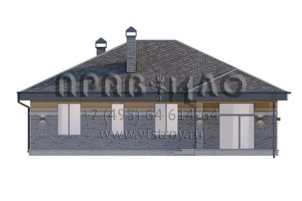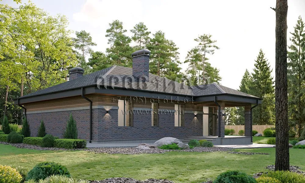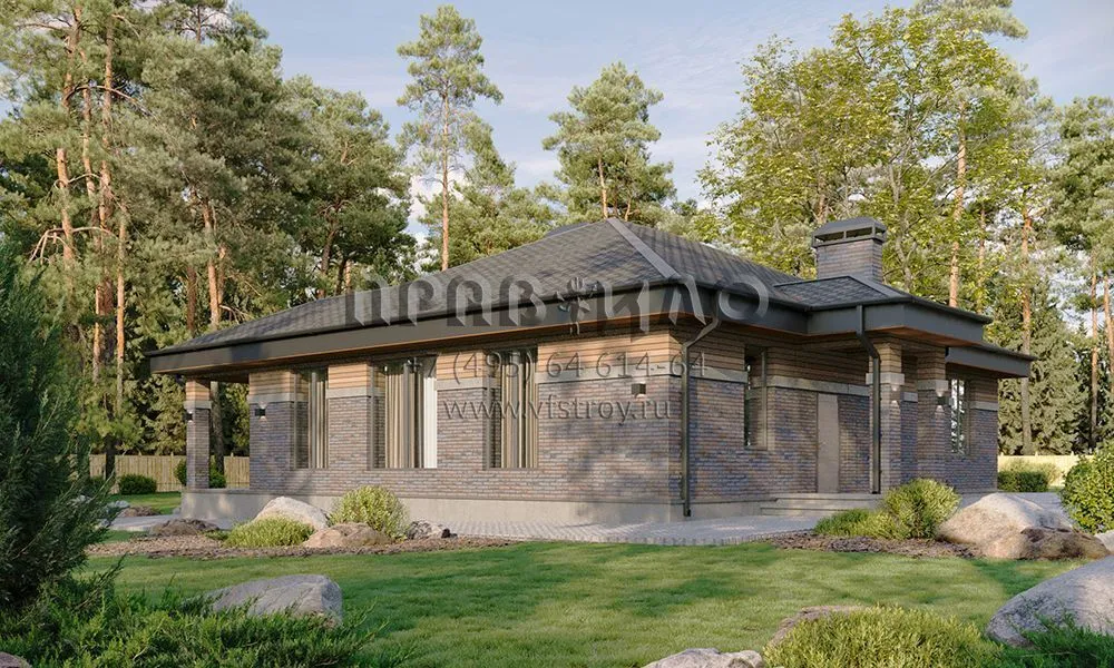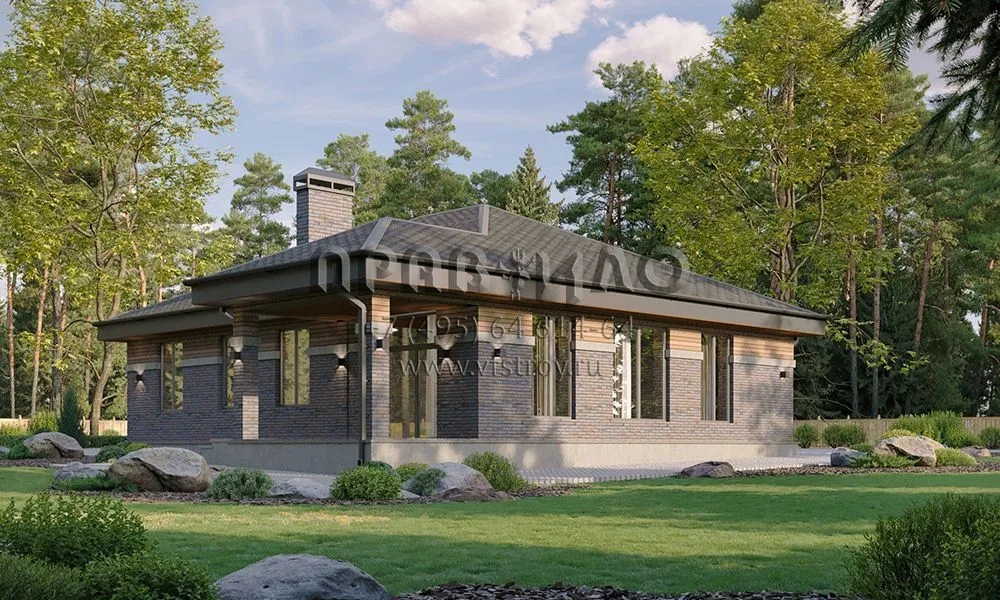 Проект квадратного одноэтажного дома с большой кухней-гостиной с выходом на террасу S2-168 (304-129-1)