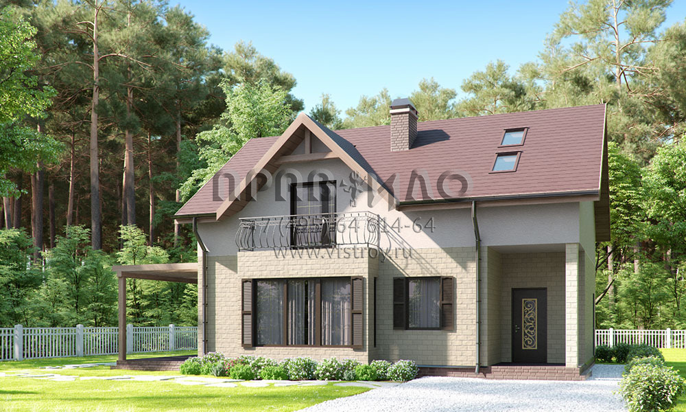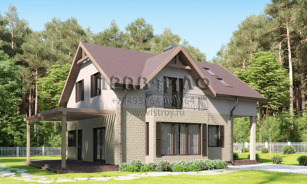 Проект стильного одноэтажного дома с эркером, мансардой, балконом и террасой S2-170 (035-170-1М)