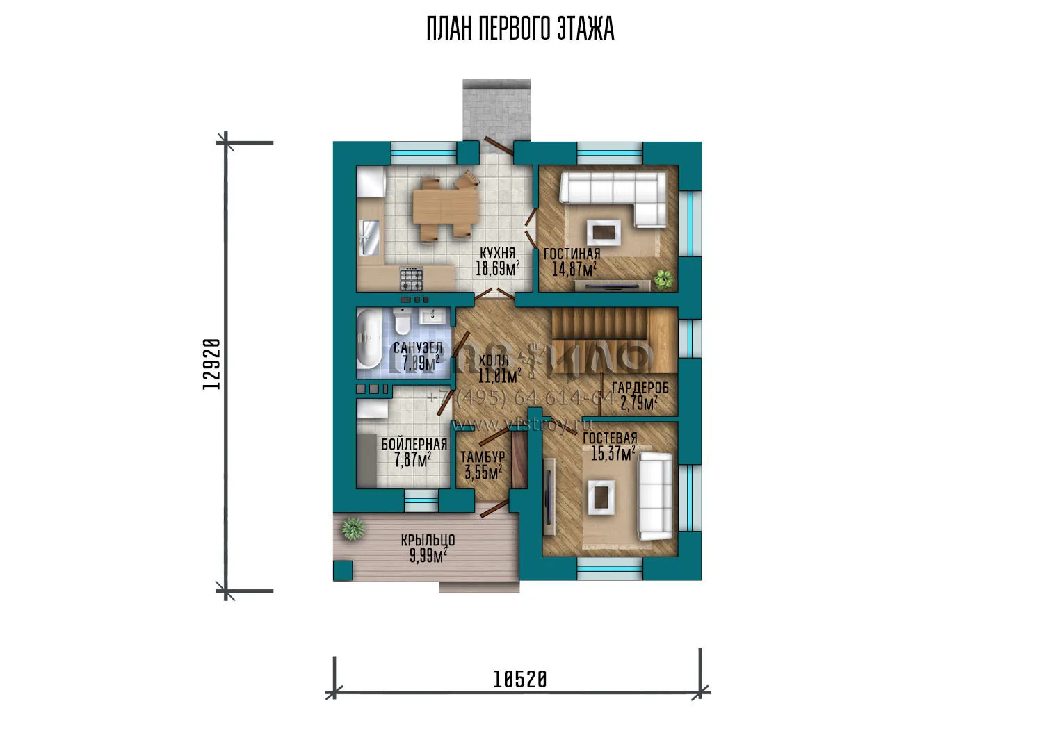 Проект компактного двухэтажного дома с террасой и балконом S2-172 (110-172-2)