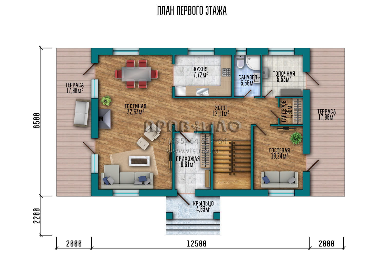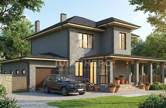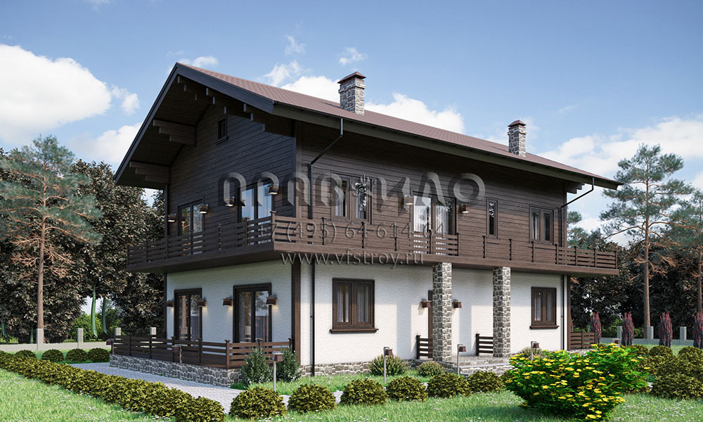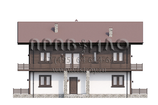 Проект дома в стиле шале с полноценными двумя этажами, большой террасой и балконом S2-177 (053-177-2)