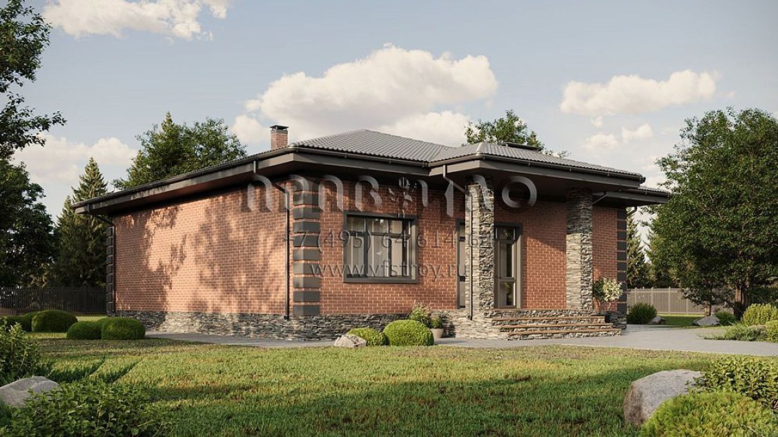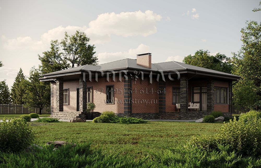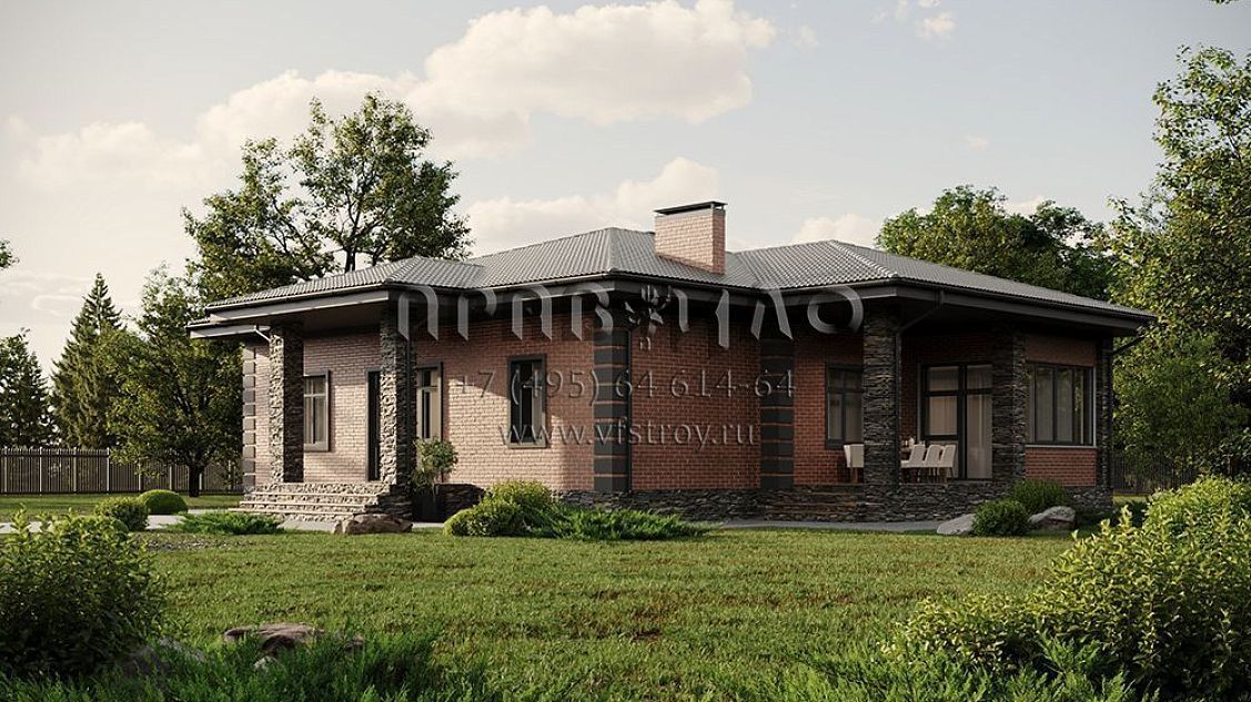 Проект уютного одноэтажного дома с крытой террасой и застекленной верандой S2-178 (333-178-1)