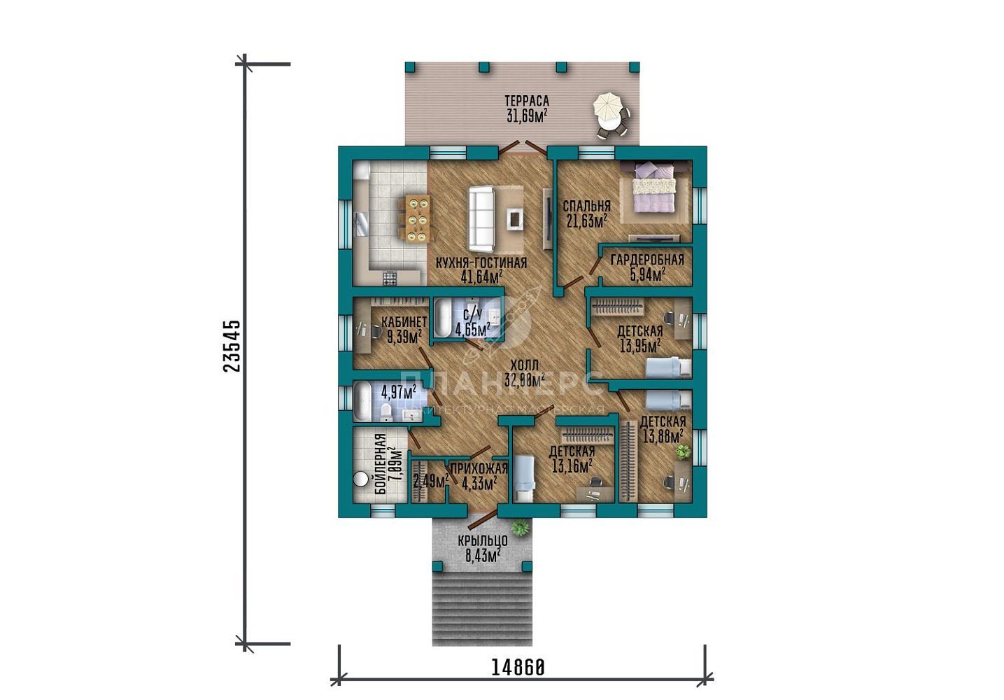Проект с террасой и вальмовой крышей S2-180 (272-181-1)