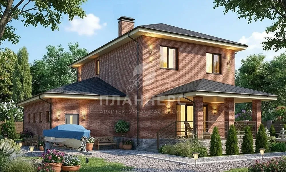 Проект с гаражом, террасой и вальмовой крышей S2-181 (455-167-2Г)