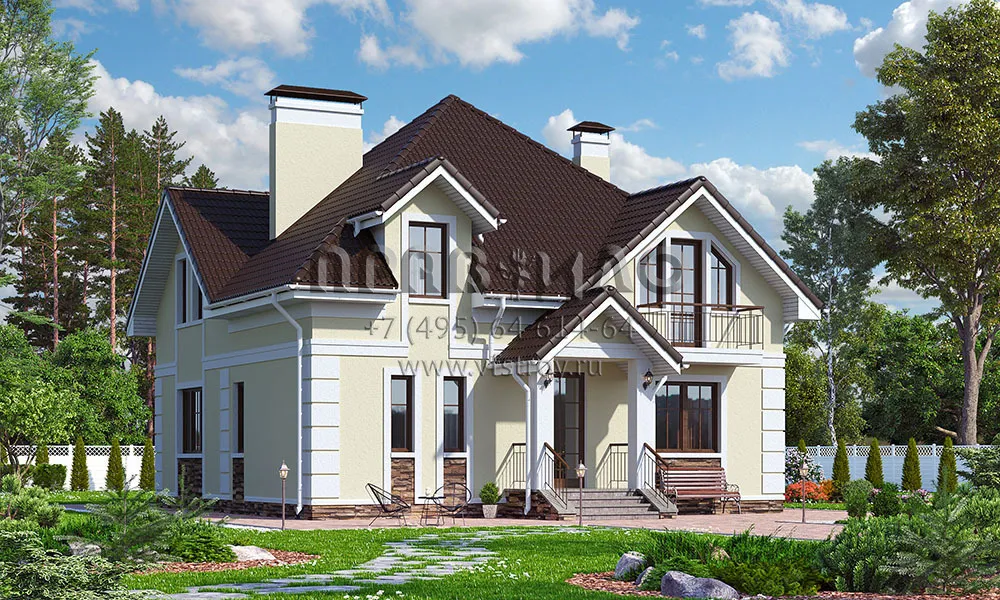 Проект компактного загородного дома с мансардным этажом и выразительной крышей S2-188 (102-188-1М)