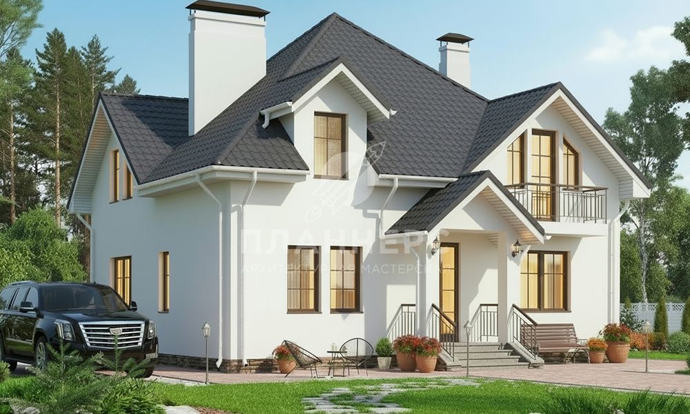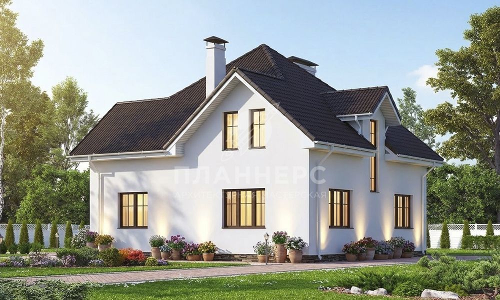 Проект с мансардой и фасадом из светлой штукатурки S2-188 (567-188-1М)