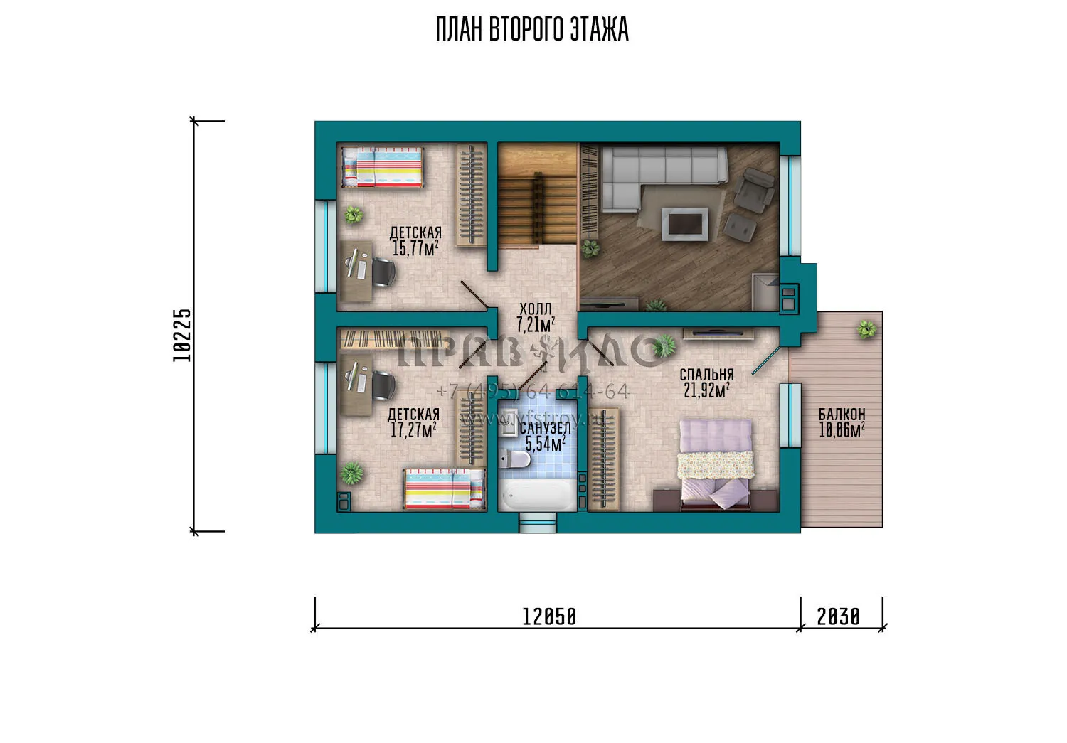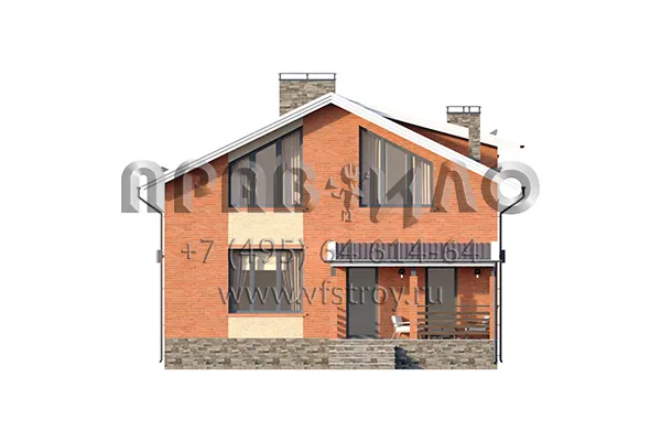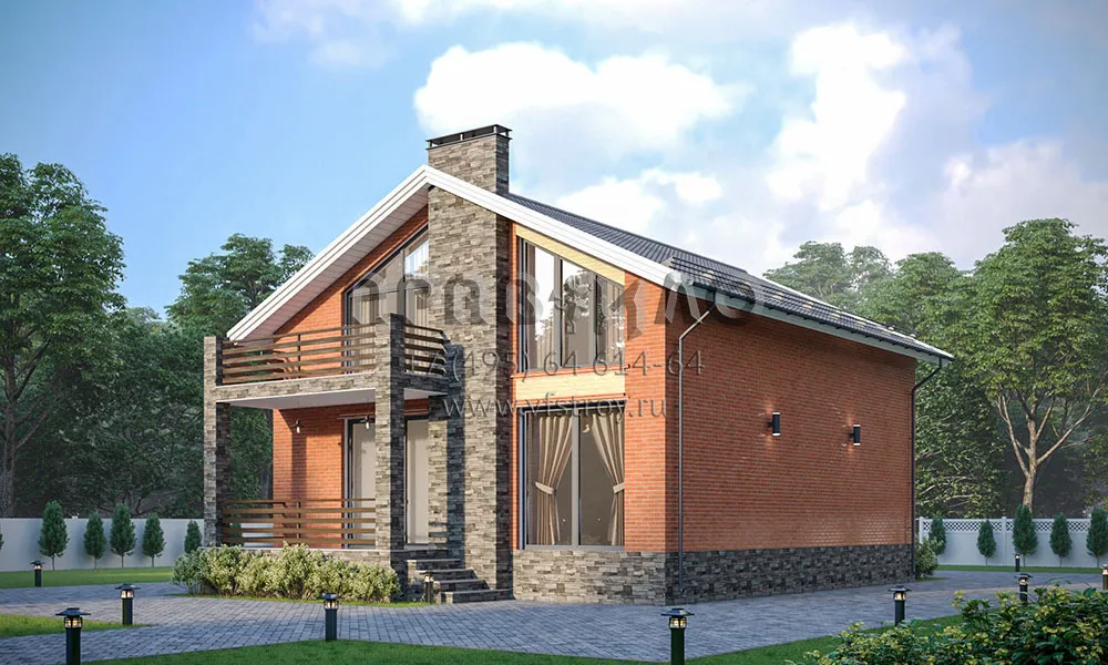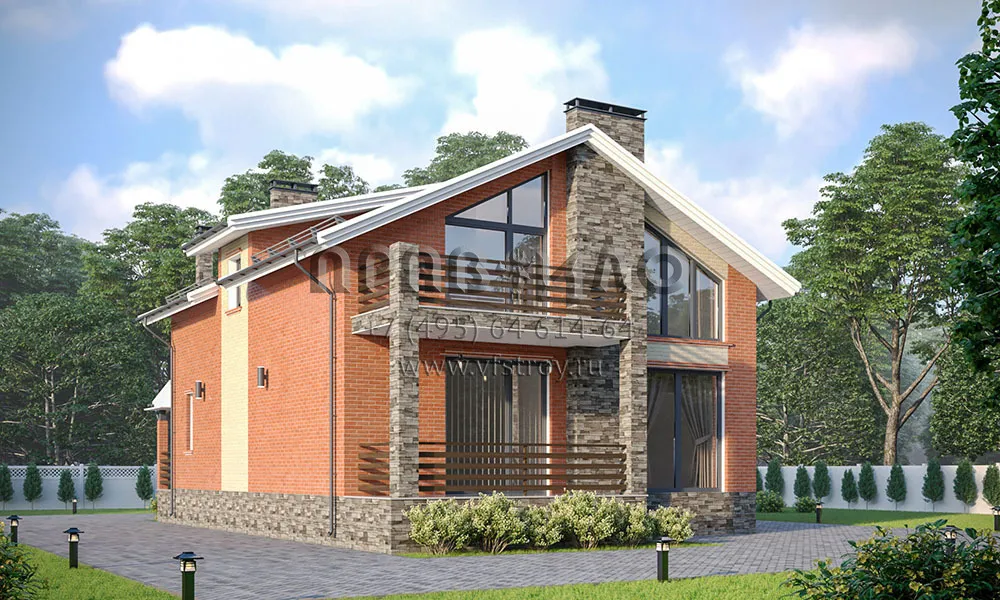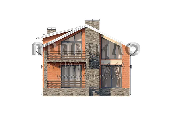 Проект коттеджа с мансардным этажом, балконом, террасой и большими окнами S2-189 (032-189-1М)