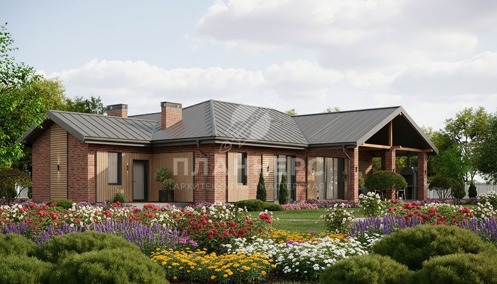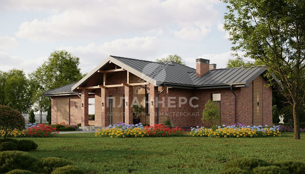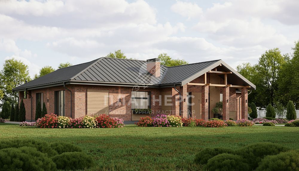 Проект с фасадом из красного кирпича и террасой S2-192 (575-193-1)