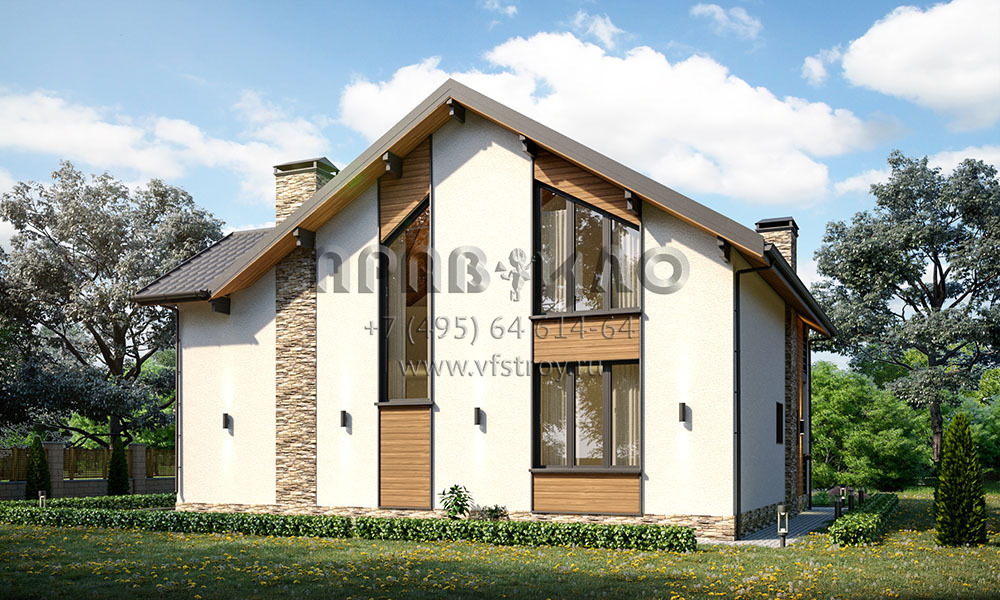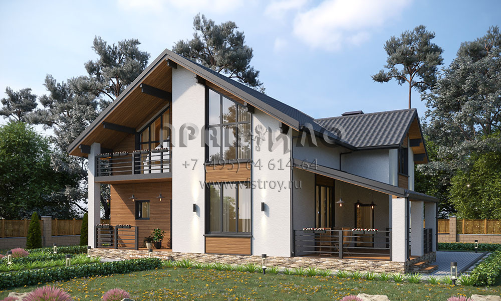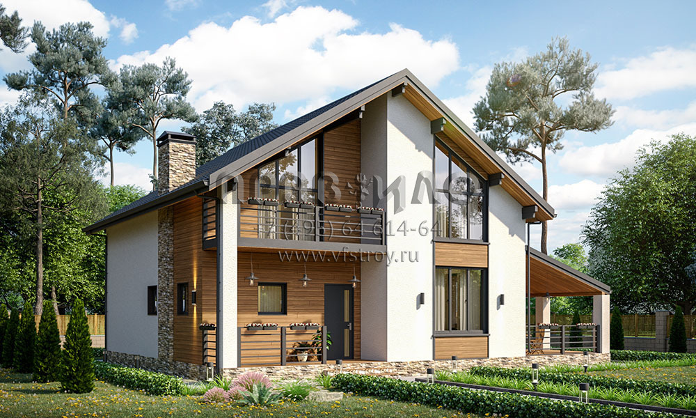Проект дома с мансардой, балконом, большой террасой и отличной планировкой S2-194 (038-194-1М)