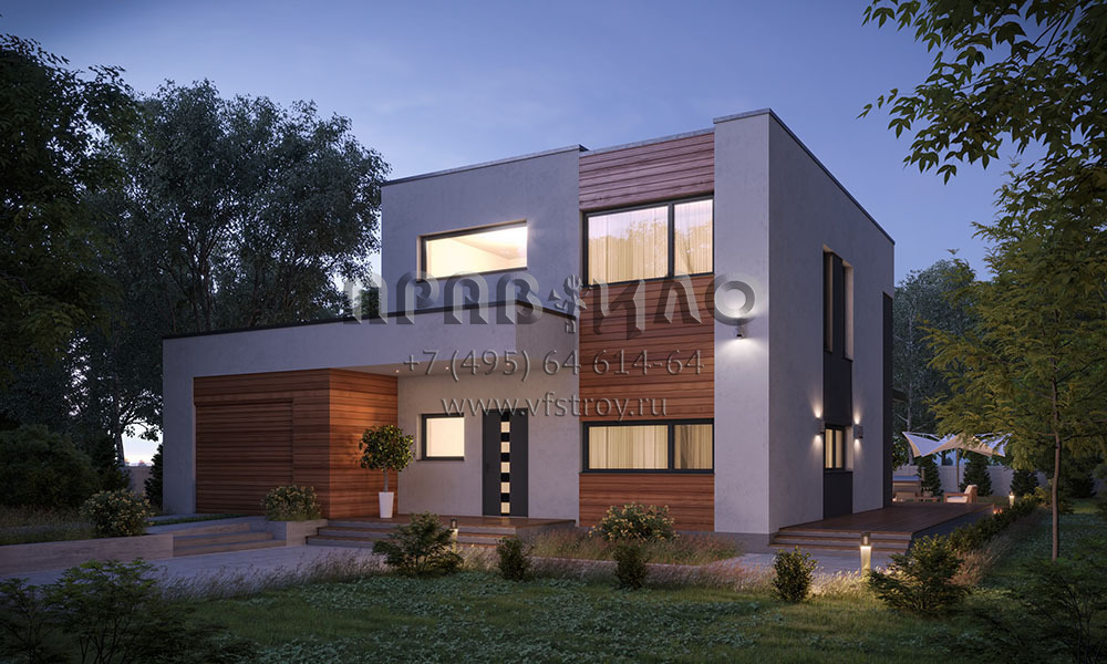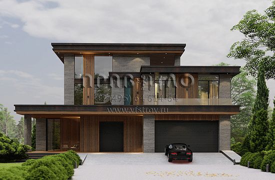 Проект дома в стиле хай-тек с комбинированной отделкой S2-198 (100-198-2Г)
