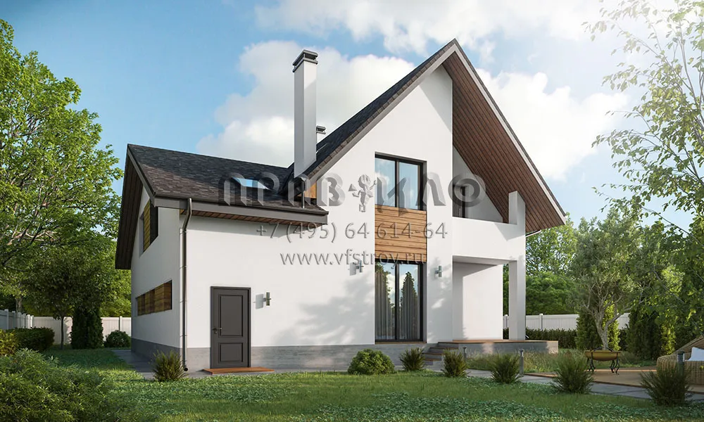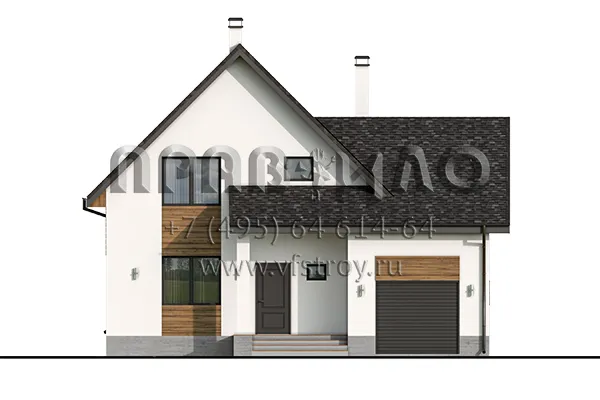 Проект небольшого дома с мансардным этажом и гаражом на 2 авто S2-198 (120-198-1МГ)