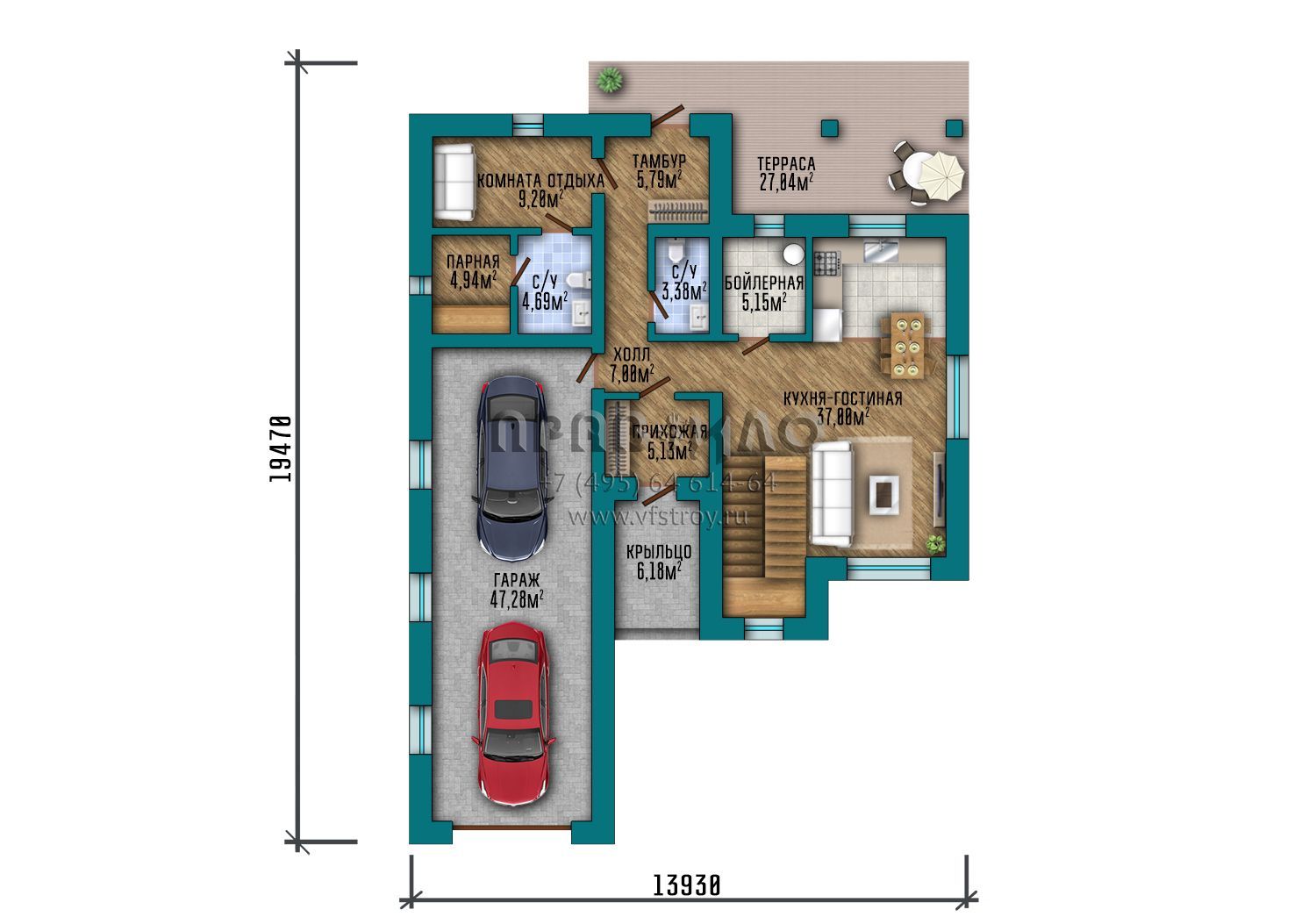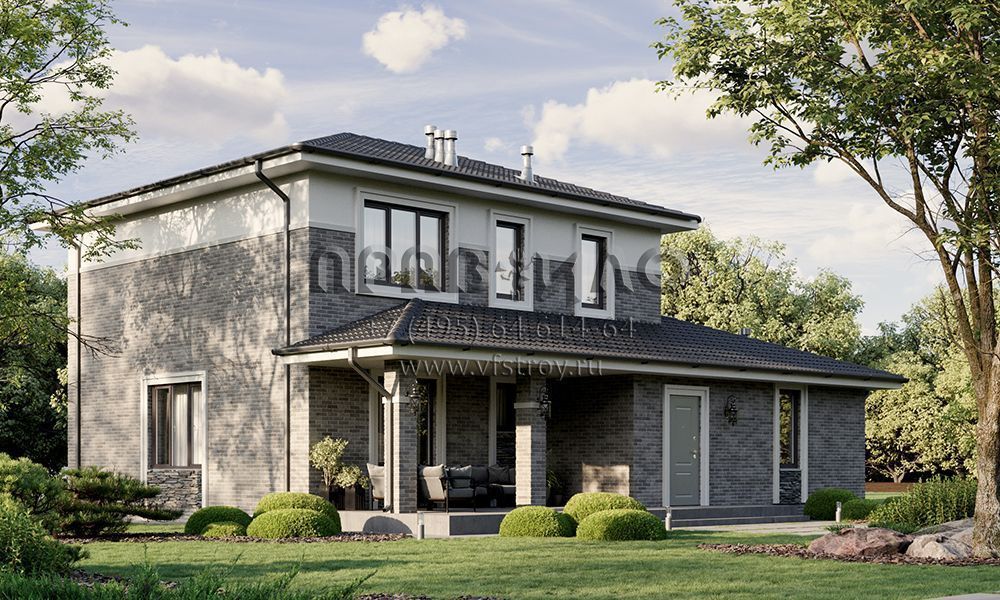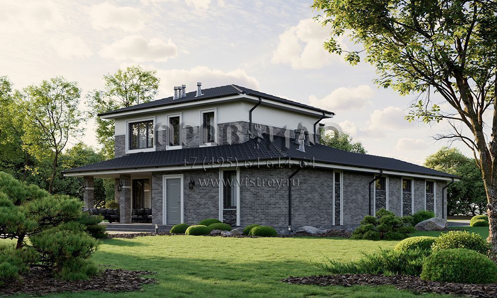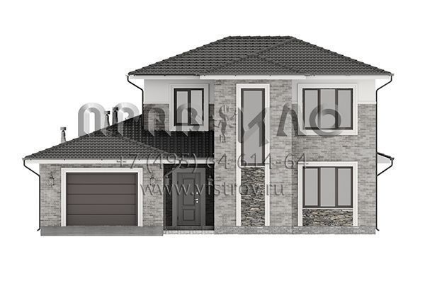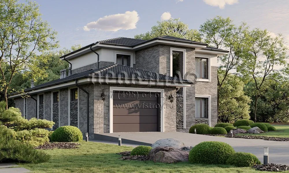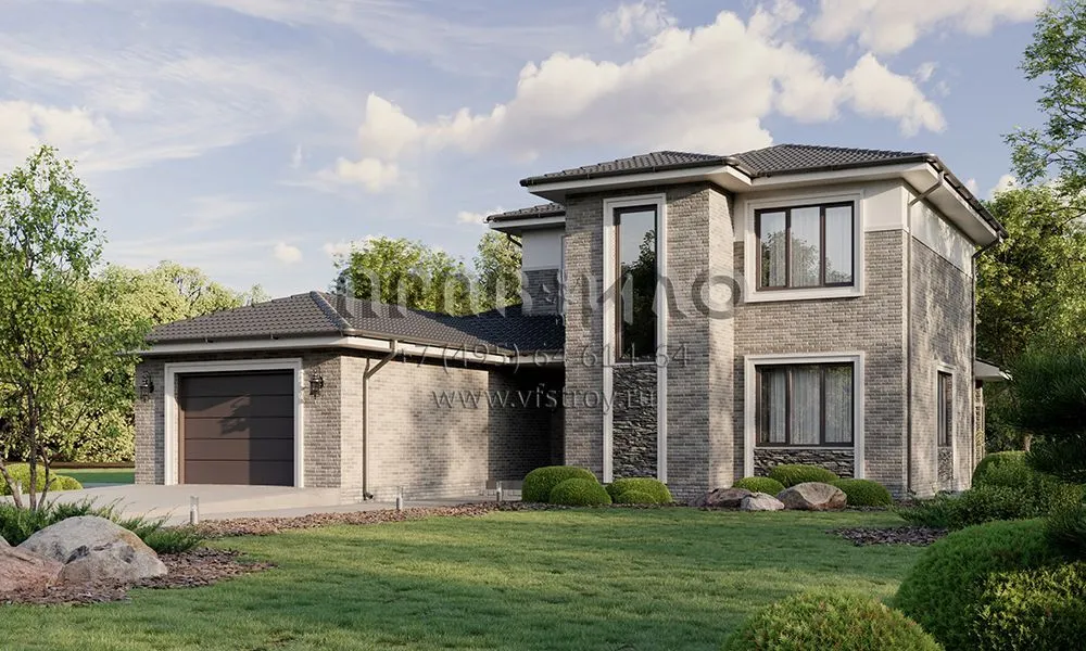 Проект двухэтажного дома с вытянутым гаражом на 2 автомобиля и банной зоной с выходом на террасу S2-200 (271-200-2Г)