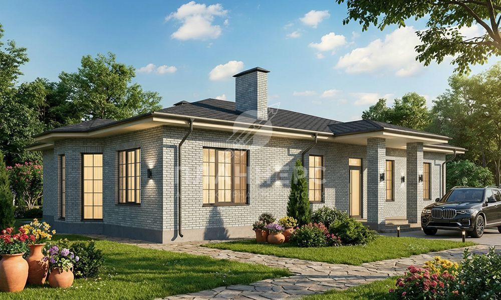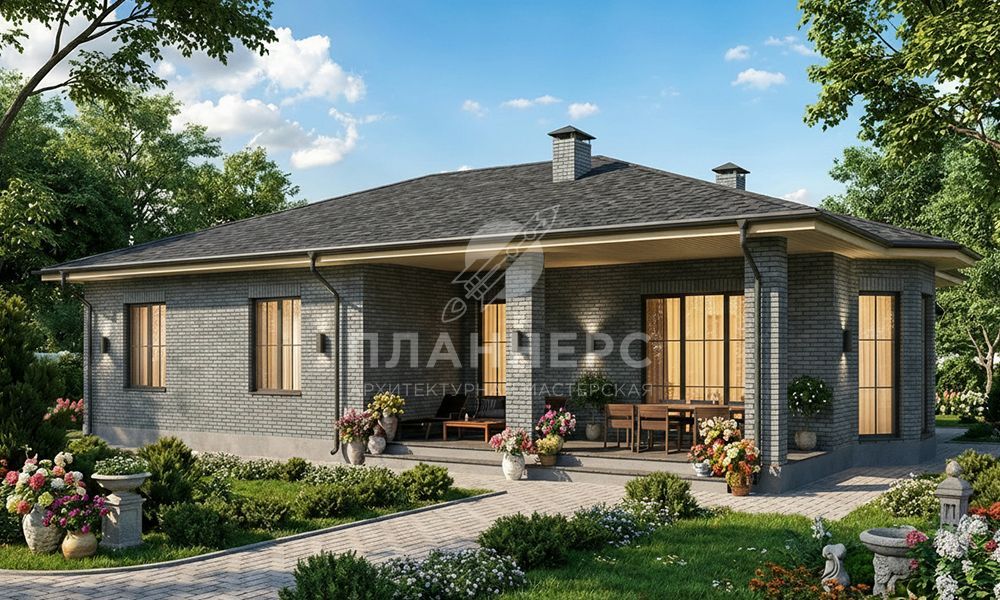 Проект с подвалом, террасой и фасадом из серого кирпича S2-203 (542-204-1)