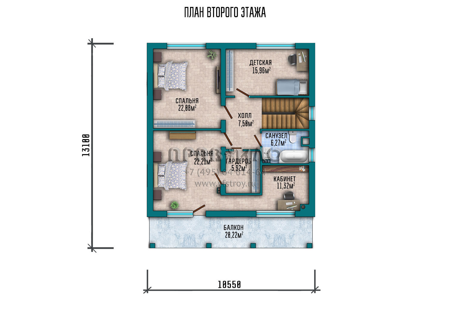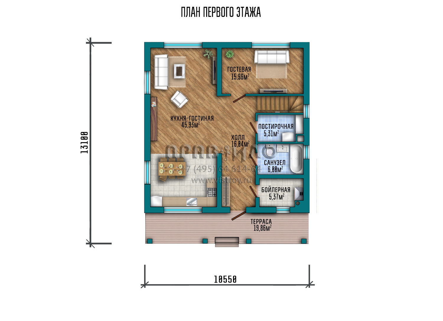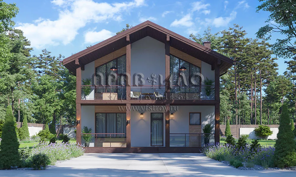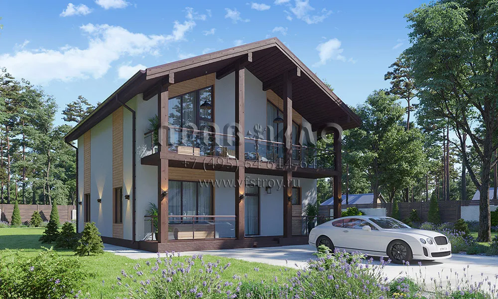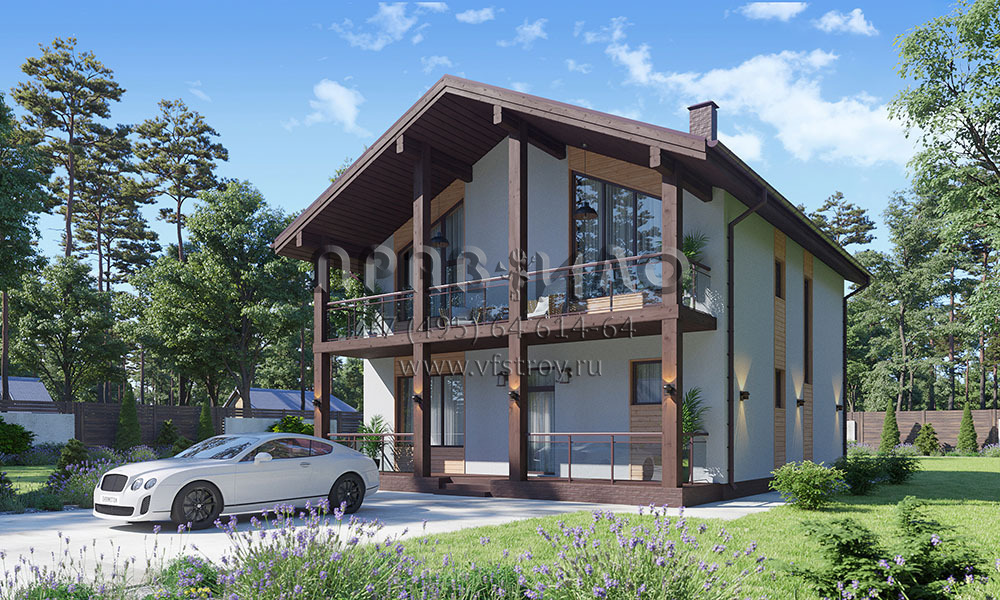 Проект загородного дома с террасой и балконом на главном фасаде S2-206 (062-206-1М)