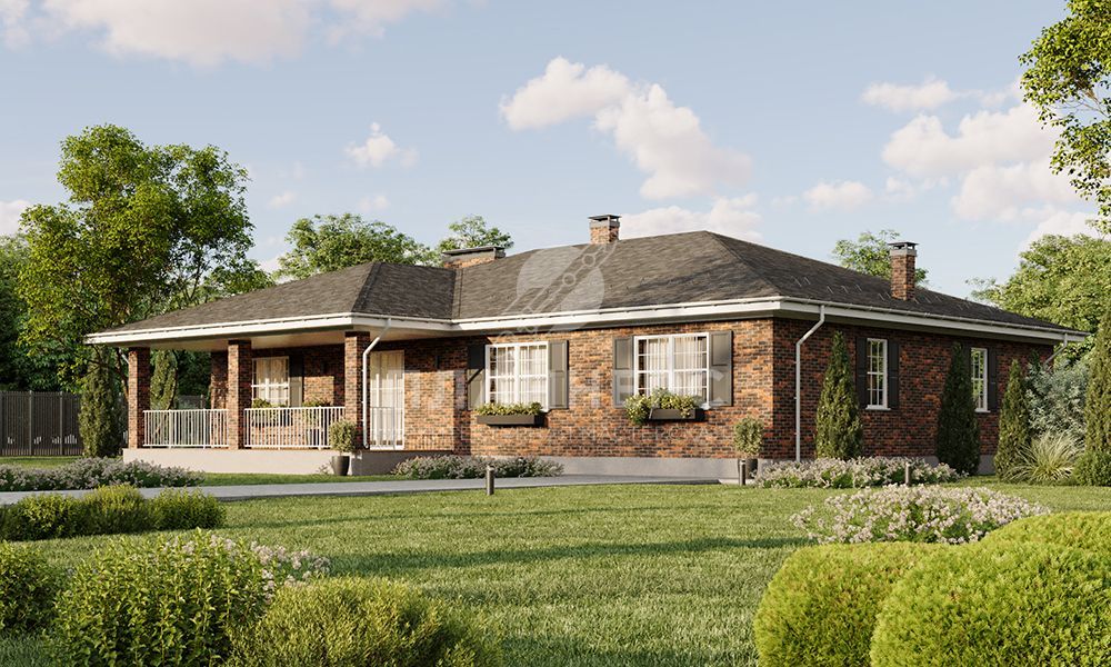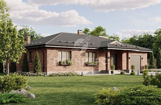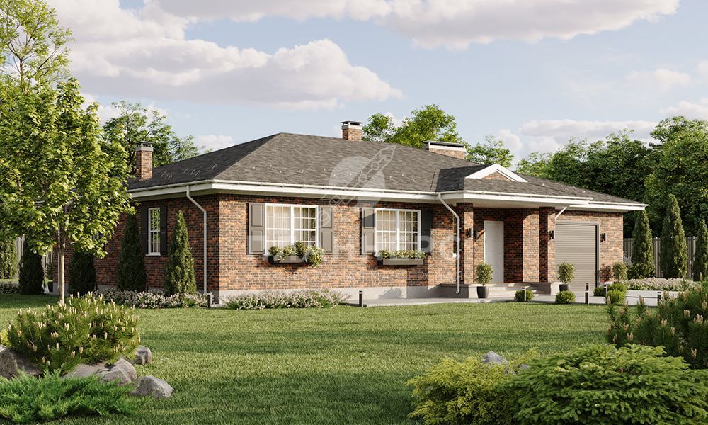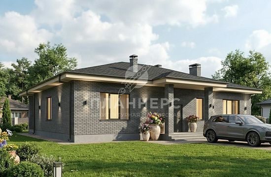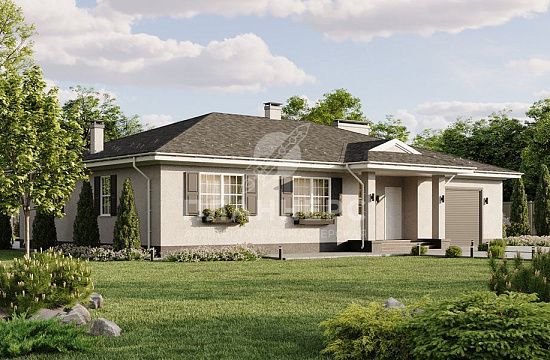 Проект просторного одноэтажного дома с гаражом, большой террасой под общей кровлей S2-214 (426-214-1Г)