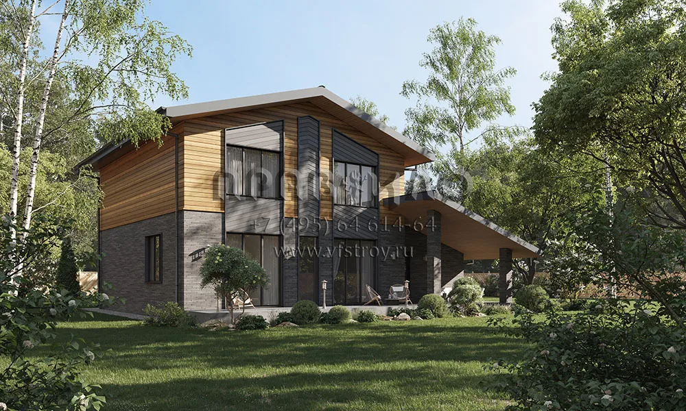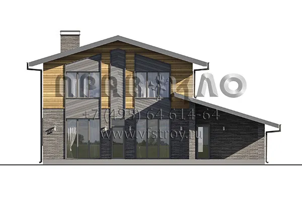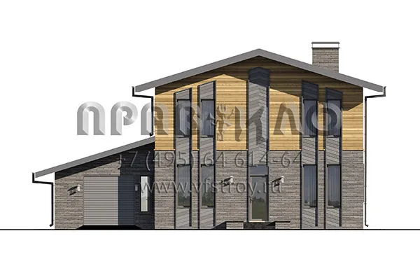 Проект двухэтажного дома с двускатной крышей и пристроенным сбоку гаражом S2-220 (188-220-2Г)