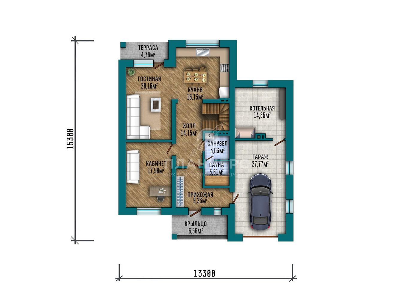 Проект двухэтажного дома с пристроенным гаражом на 1 автомобиль S2-222 (413-222-2Г)
