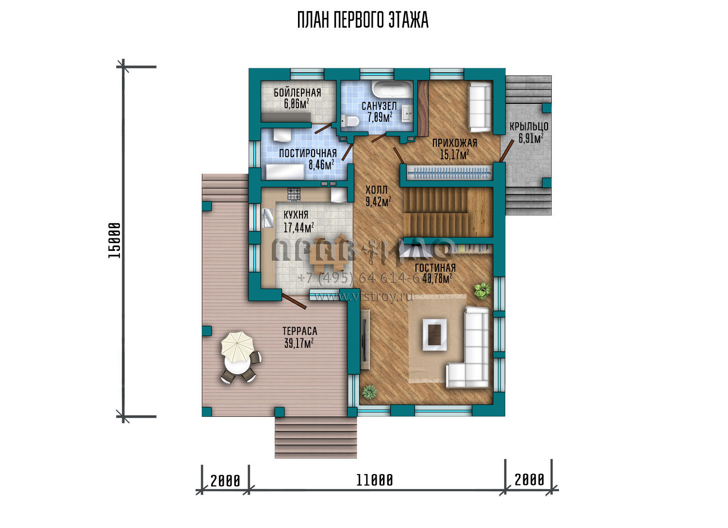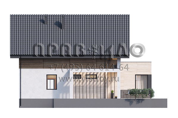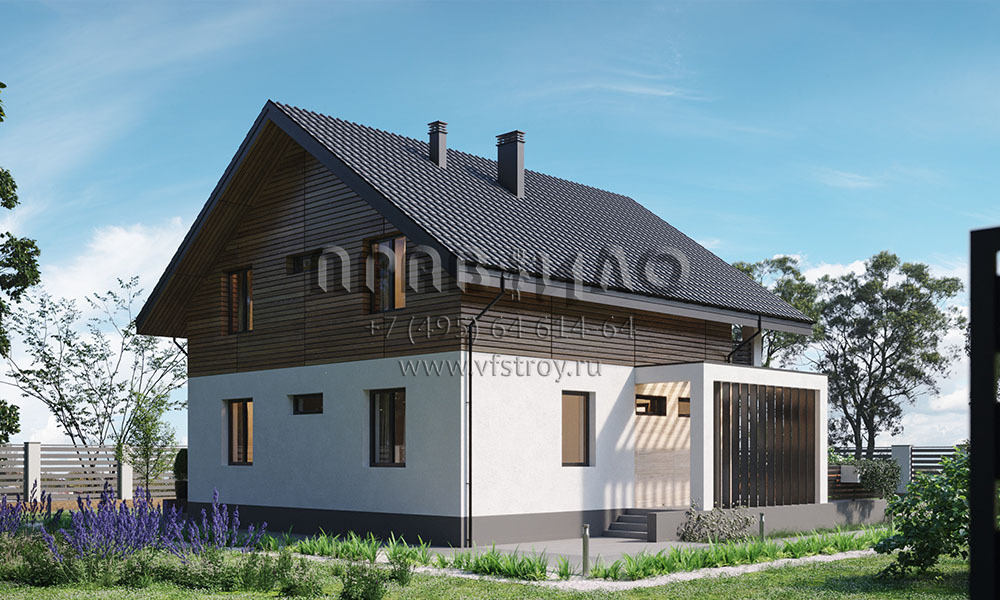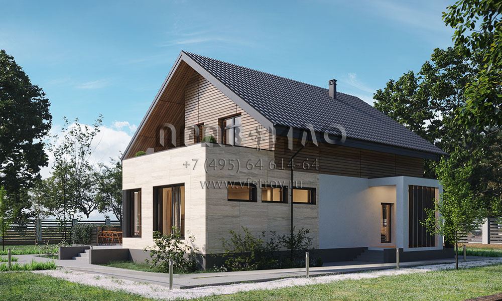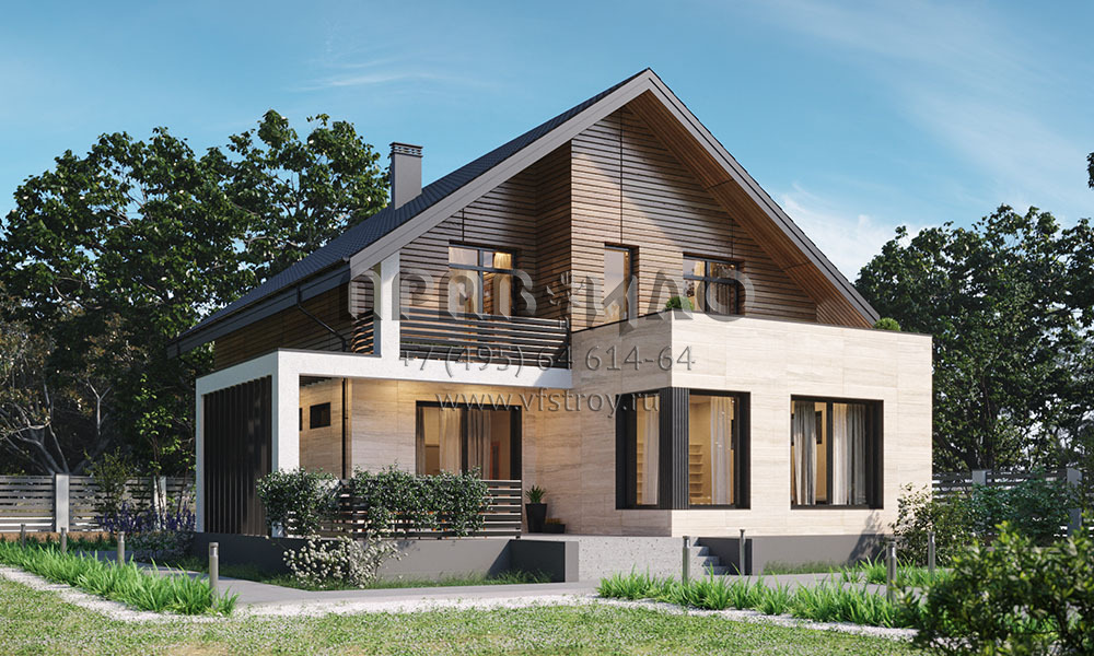 Проект дома с мансардой в современном стиле, большой террасой и эргономичной планировкой S2-224 (087-224-1М)