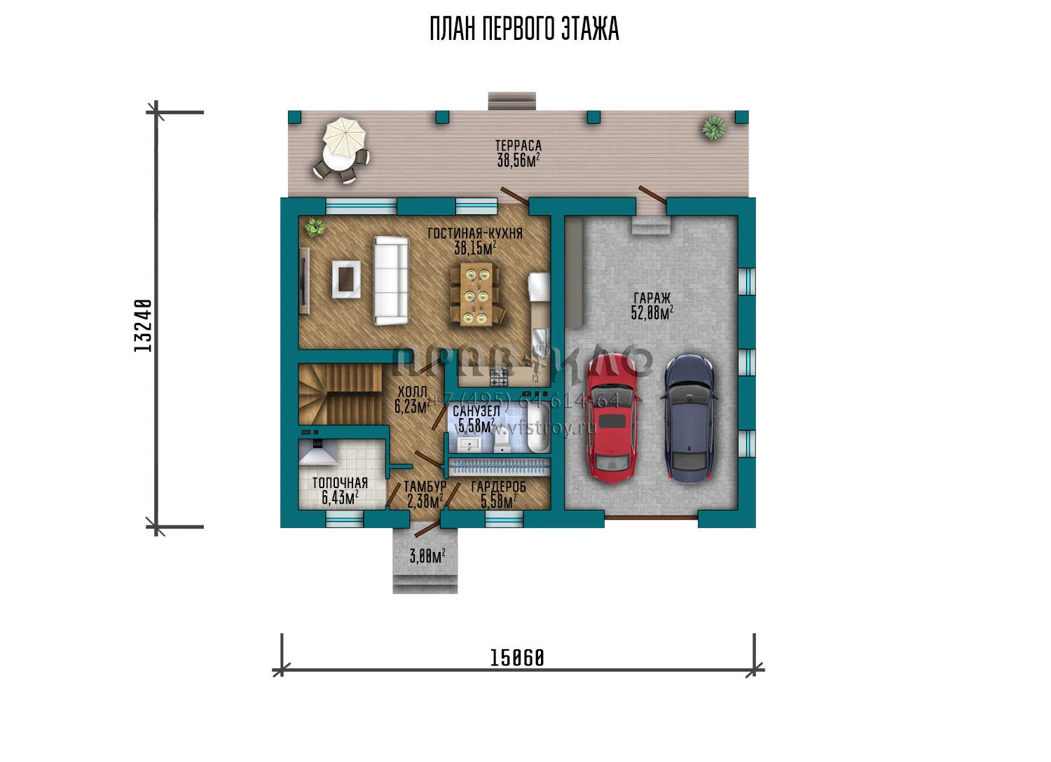 | Гараж | 2 машины |