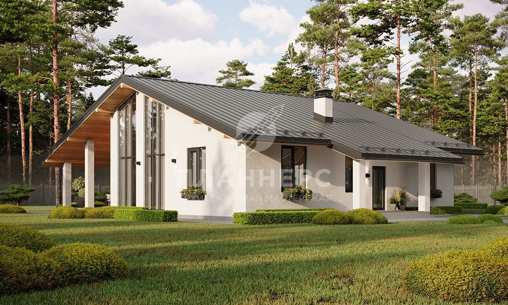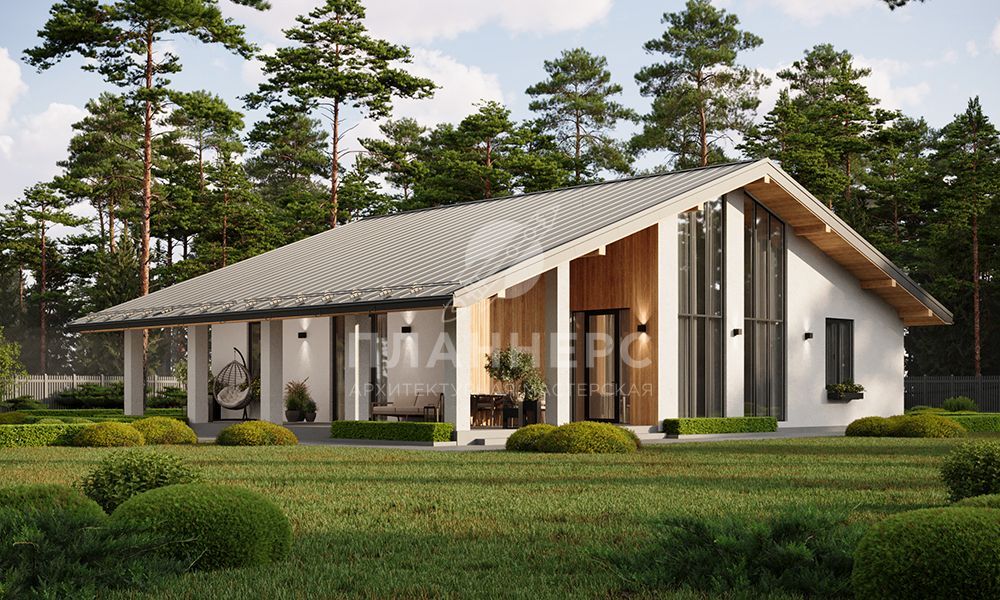 Проект большого одноэтажного дома со вторым светом и витражным остеклением S2-225 (433-226-1)