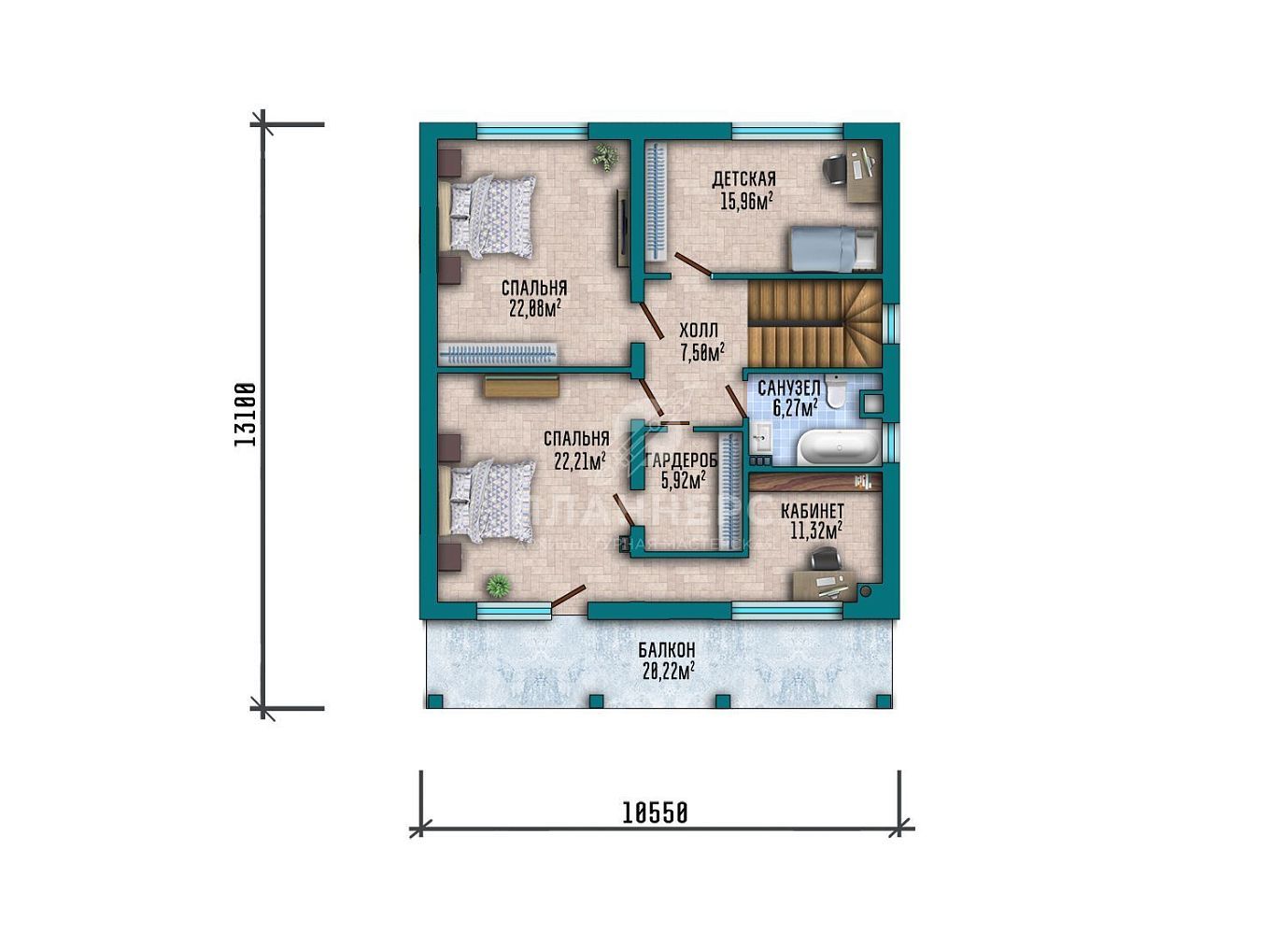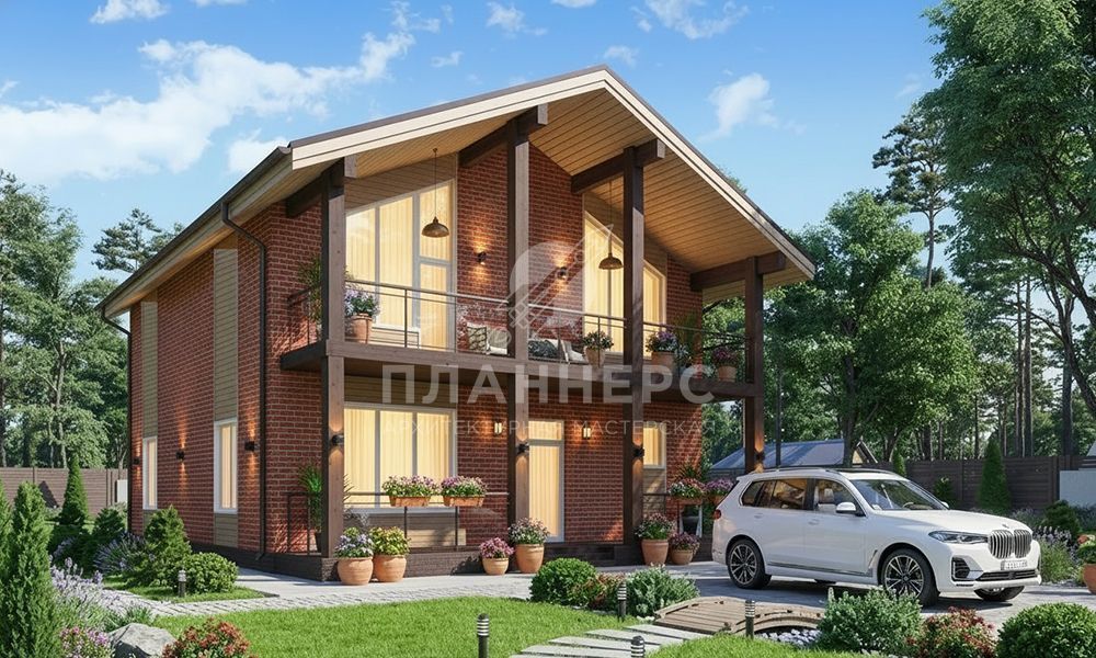 Проект с мансардой, террасой и двухскатной крышей S2-225 (456-206-1М)