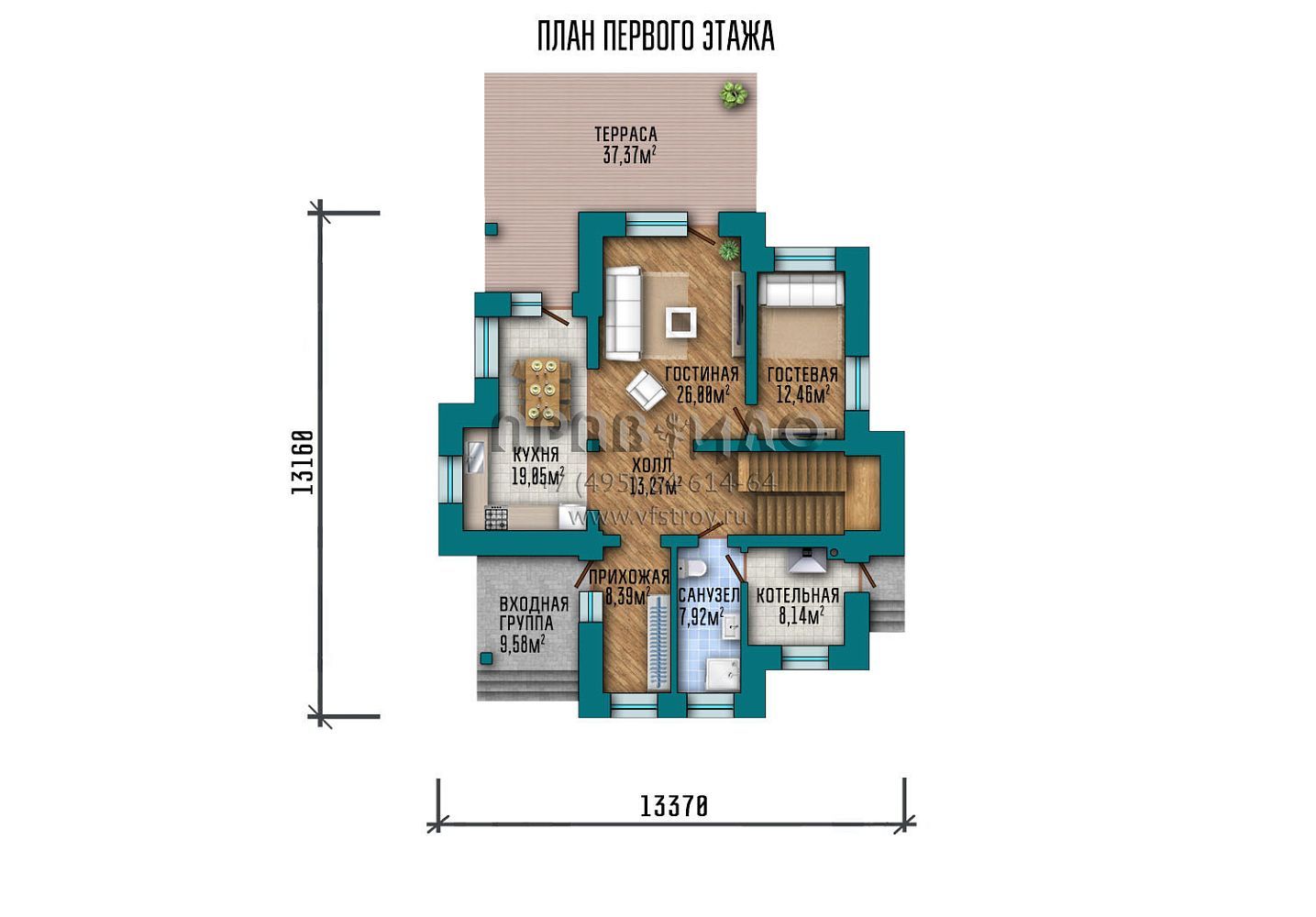 Проект красивого дома с мансардой, большой террасой и выразительной крышей S2-229 (097-229-1М)