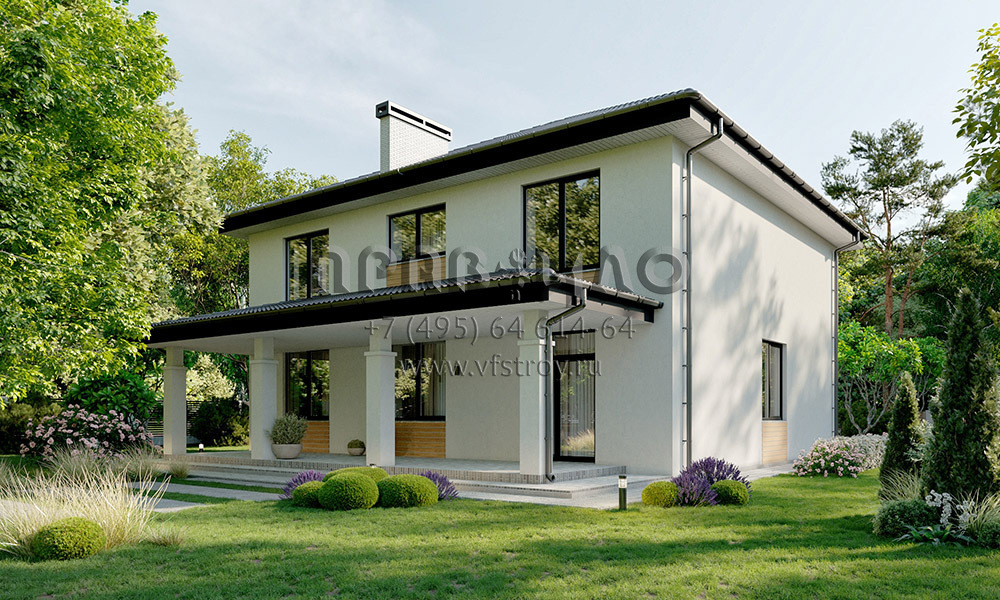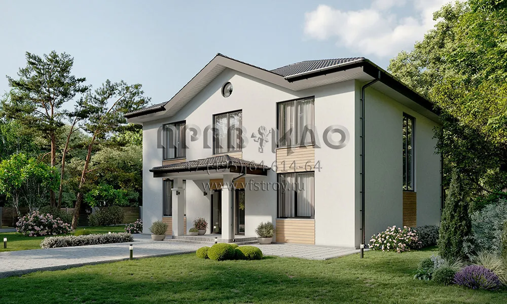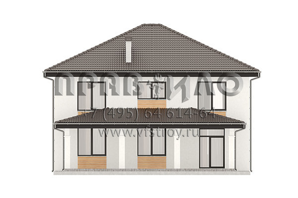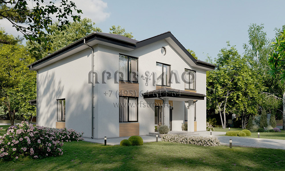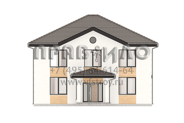 Проект элегантного двухэтажного дома с крыльцом, террасой и изящным фронтоном S2-229 (220-229-2)